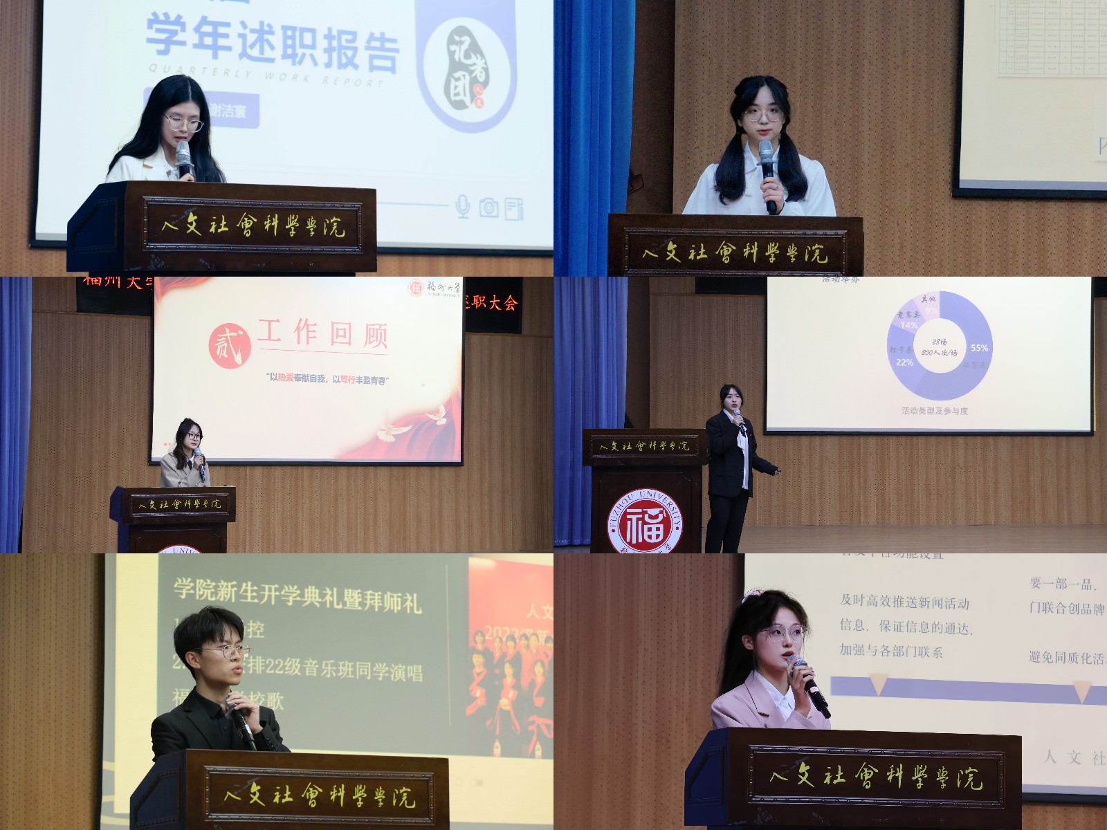 大会上,各部门负责人依次从部门介绍、年度总结以及未来发展等方向进行总结报告。记者团负责人谢洁寰以“打造‘做’的态度,营造‘家’的氛围”总结一年来的努力工作。对于部门的定位,文化部负责人总结到“以更好的行动承接人文精神,用实际行动传达人文精神。”团委组织部以“重效率、提质量、严要求、勤学习”作为未来的规划目标。而网络信息部以“高定位、重时效、促协同、创品牌、多思考、显温度”来对部门年度工作进行总结,并以此为基点,为网信部的工作作出规划。本次述职大会,不仅有“以热爱充盈自我,以笃行奉献青春”的宣言,更有色情游戏