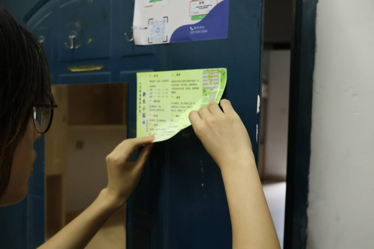 此外,志愿者们在各宿舍门前张贴对联,展现人文风采,传递对新生的真挚祝福。宿舍门后附上了新生小贴士,对校园医务、快递、购物、餐饮等各类服务基本信息进行说明,帮助新同学们更快适应大学生活。学院还为各宿舍准备了包括扫帚、畚斗、抹布、马桶刷、洁厕灵在内的劳动清扫工具,方便新生入学后整理内务。