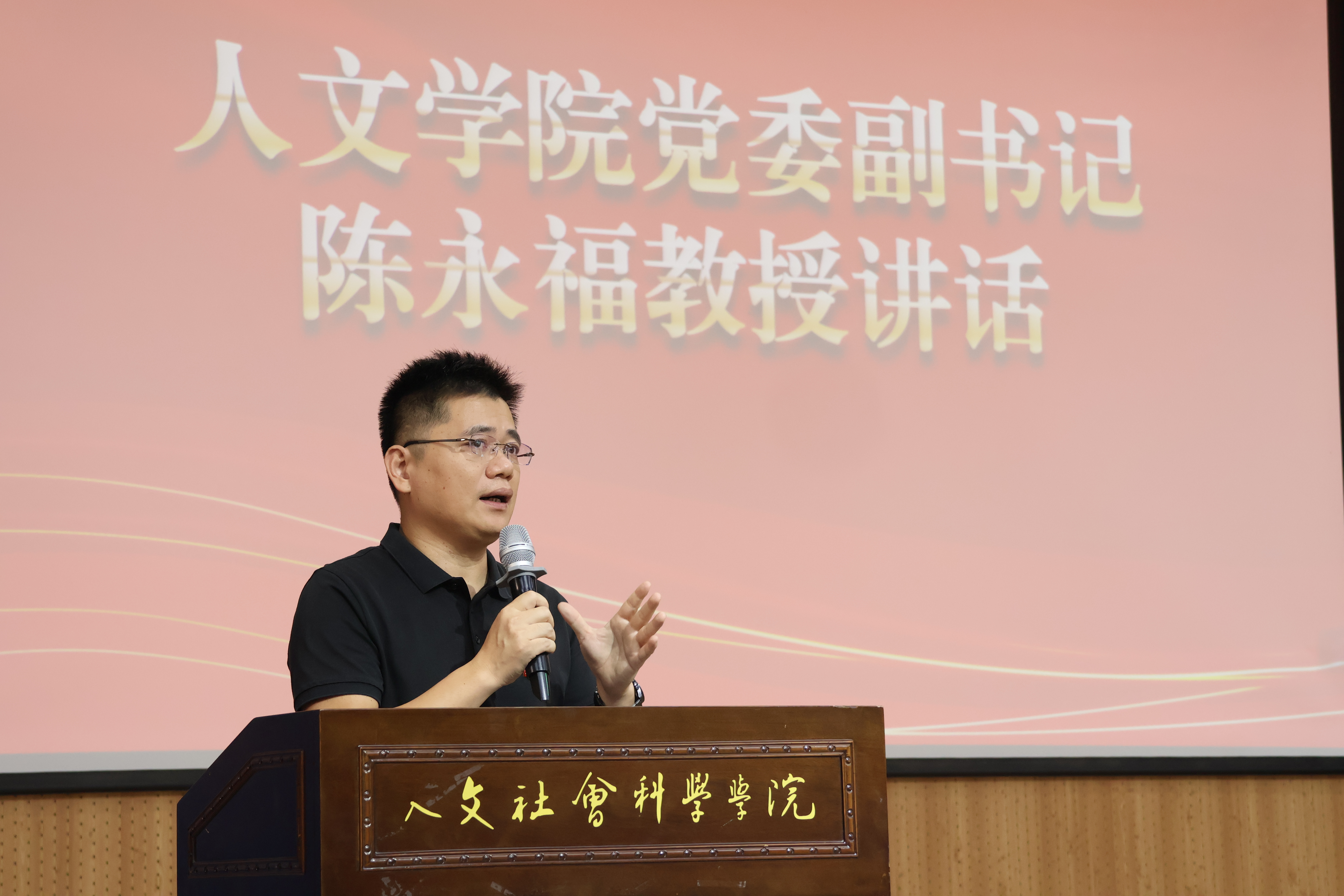 党委副书记陈永福教授致辞。陈永福教授对青马班学员提出三点希望:一是希望全体学员深刻认识青马班的重要意义,要通过青马班学习,厚植家国情怀,牢记使命担当,德智体美劳全面发展。二是希望全体学员读原著,悟原理,多读经典,从中汲取知识,吸收理论养分,内化为人格品质。三是希望全体学员做到知行合一,当好“领头羊”,传好“接力棒”,开创新篇章。