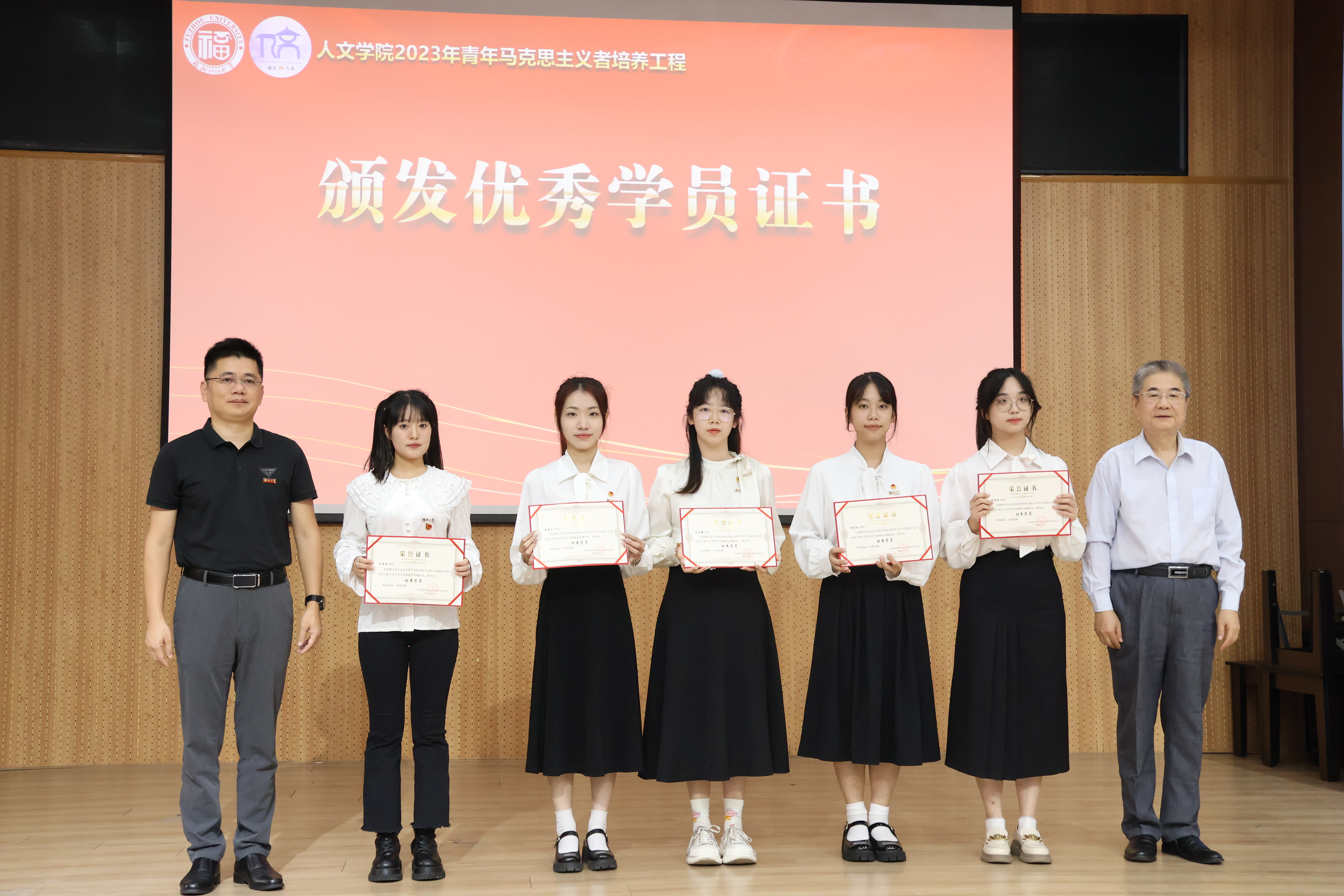 开班仪式在庄严的国歌声中开始。接着,学院为2022年大学生骨干培训班举行结业仪式。在一年的学思践悟中,庄嘉雯、朱梦娟、张倩瑜、黄荣心、汪佳凝、周若瑶、乔鸣歌等七位同学被评为“2022年大学生骨干培训班优秀学员”,陈少平研究员与陈永福教授为优秀学员颁发证书。