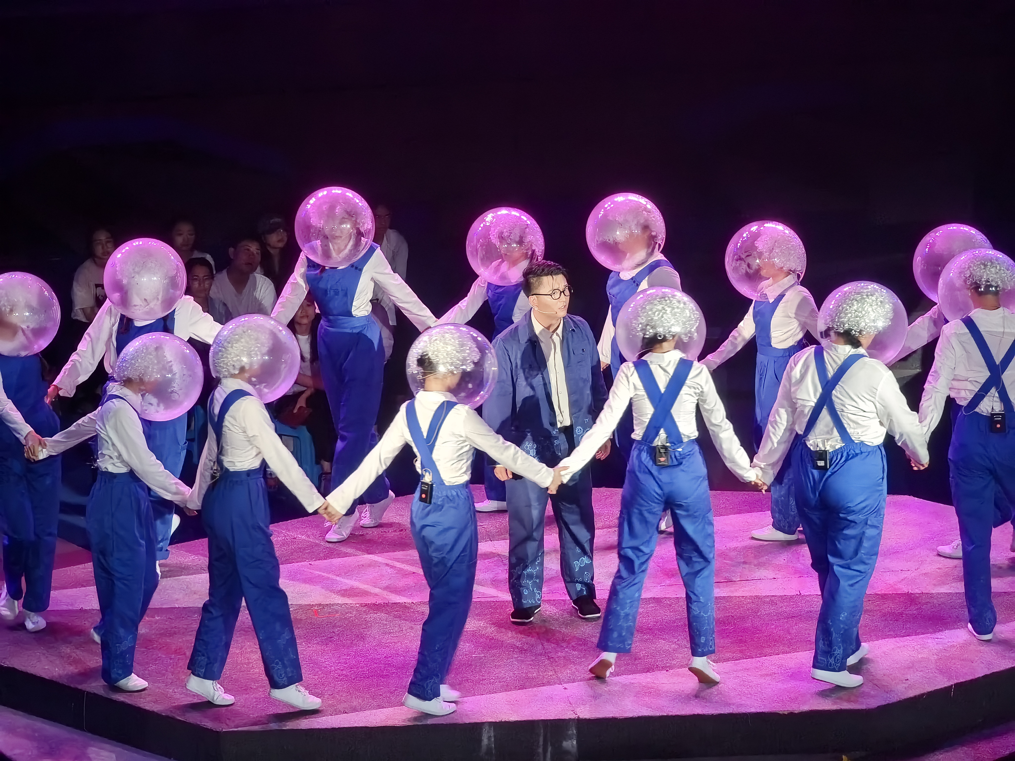 此次戏剧演出整体基调温暖动人,作为沉浸式戏剧,它强调把观众融入到剧情之中。在演出现场,无论是贯穿于整个演出的舞台灯光的艺术表现,演员的真情流露,还是音乐的烘托,都让观众随着剧情的演进沉浸其中,奉献了一场视觉与听觉的双重盛宴。沉浸式戏剧最大的优势在于零距离观看演员的表演、与剧中人物直接互动、更真实震撼的视觉效果。在艰难时期,卢嘉锡先生多少思潮起伏,本已秉乐观坚心的他在闻知心念学生的逝世后,精神支柱轰然倒塌,但在亲友关切下,他选择了挺身振作,最终创造更大的辉煌,观及此,观众们纷纷潸然泪下,真挚的情感在整个会场间流转。那些鲜活的人物、那些感人的事迹,无一不书写那个风雨飘摇的年代,无一不展现福大人的爱国爱校情怀与困境中砥砺不辍的科研精神,为新时代色情游戏