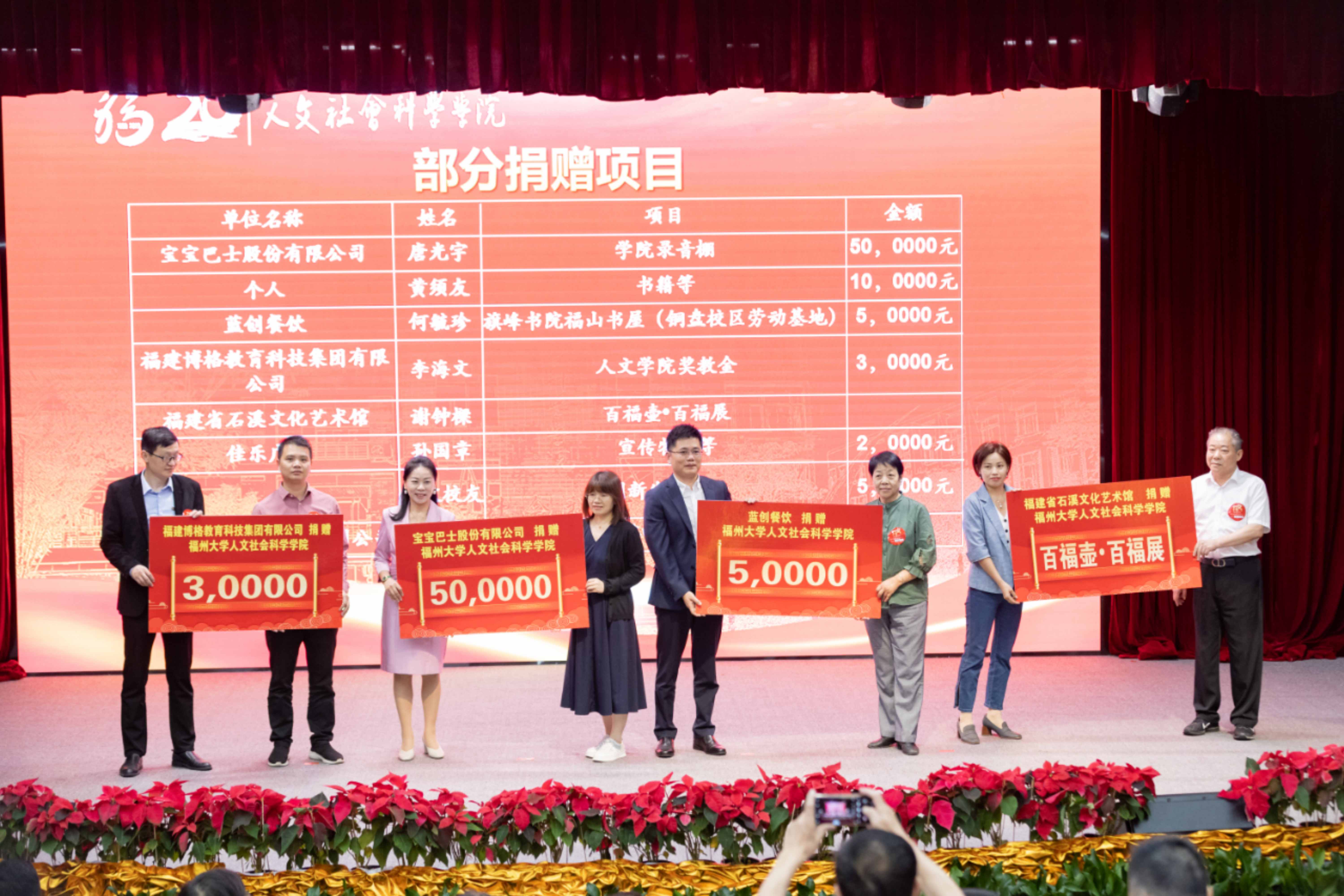 随后,举行校友捐赠仪式。在院庆期间,宝宝巴士股份有限公司、蓝创餐饮、福建博格教育科技集团有限公司、福建省石溪文化艺术馆、佳乐广告等单位慷慨解囊,捐款捐物,为学院发展添砖加瓦。此外,色情游戏 创新发展基金捐赠达871人次,累计金额超过五万元。涓涓细流汇成浩瀚江海,点滴爱心凝聚奋进力量。