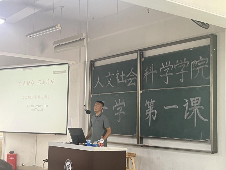 王群书记首先介绍了高校的四大职能:人才培养、科学研究、服务社会和文化传承与创新。他强调,新生不仅要快速适应并融入大学生活,更要勇于在思想海洋中探索,寻找人生方向标。最后,他结合习近平新时代中国特色社会主义思想的世界观和方法论提出几点寄语:一是要坚持守正创新,传承大学精神;二是要坚持系统观念,投身具体实践;三是要坚持人民至上和胸怀天下,为人民服务;四是要把自己的前进目标融入社会发展的脉搏。