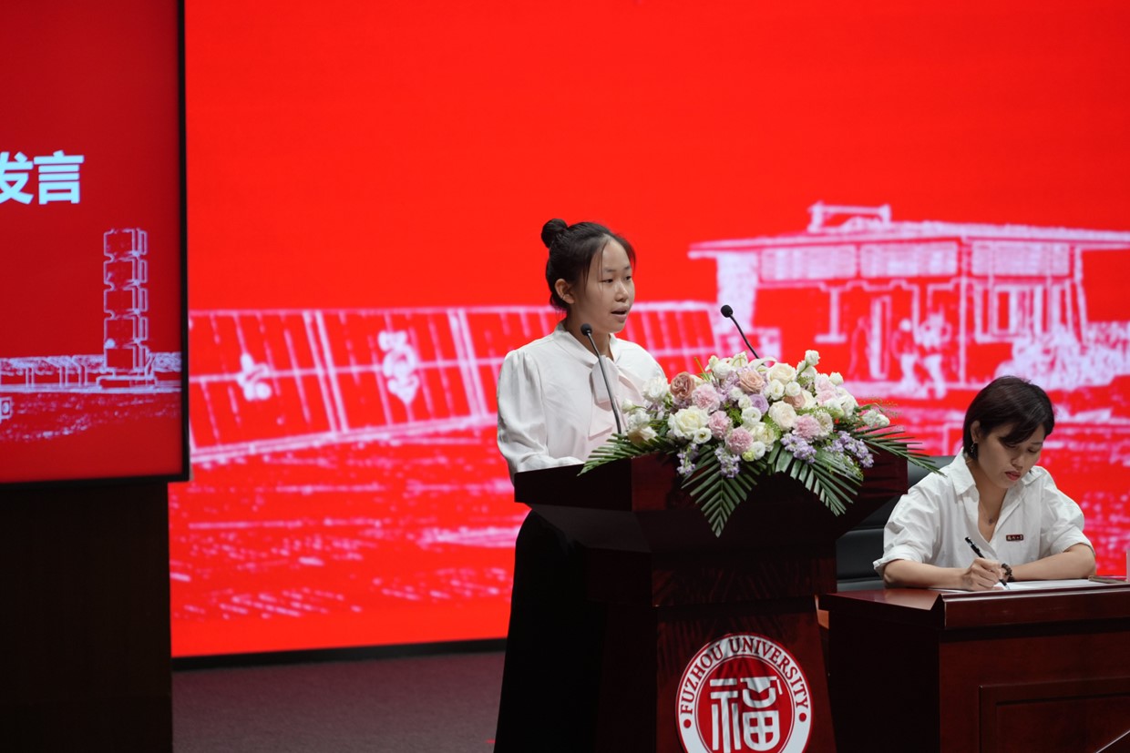 本科生新生代表孙婧怡同学、研究生新生代表彭雯琪同学先后发言。孙婧怡同学号召大家:把所学知识内化于心,形成自己的见解,将理论与实际相连,感受两者的同频共振;坚持正确的价值取向,拓展国际视野,与时代同呼吸共命运;对生活时刻保持感知力、同理心和共情力,体察生活的点滴,始终怀有良知与悲悯;拥有这些宝贵品质,人文学子才能无悔青春,走向远方。