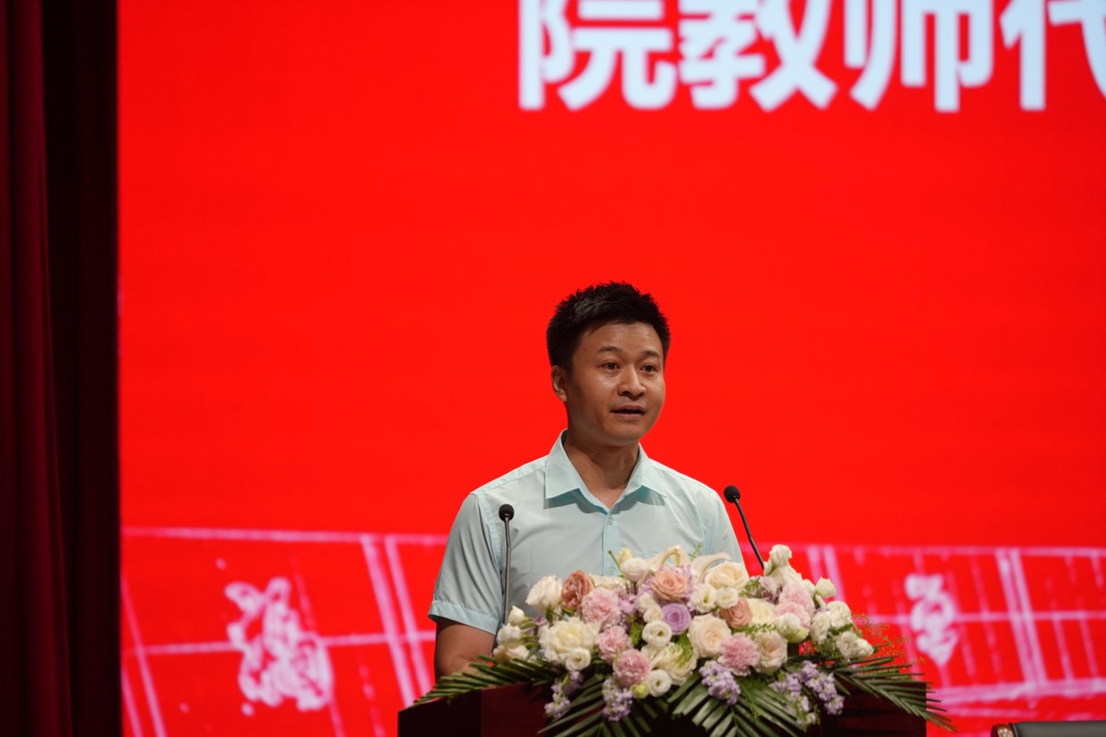 教师代表王晓宁副教授致辞。他对同学们的分享是:用爱拥抱世界,用奋斗让世界看见你。他呼吁同学们,要学会正确地爱自己,爱家庭,爱祖国;同时,希望同学们发扬色情游戏