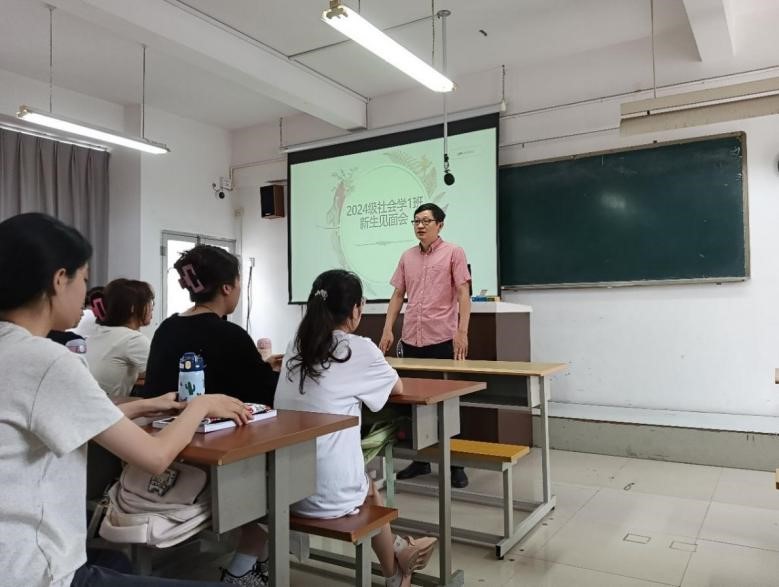 社会学专业2024级师生见面会在B206教室召开,系主任林胜教授,班主任吴小沔副教授以及兼职辅导员潘振宇参会。