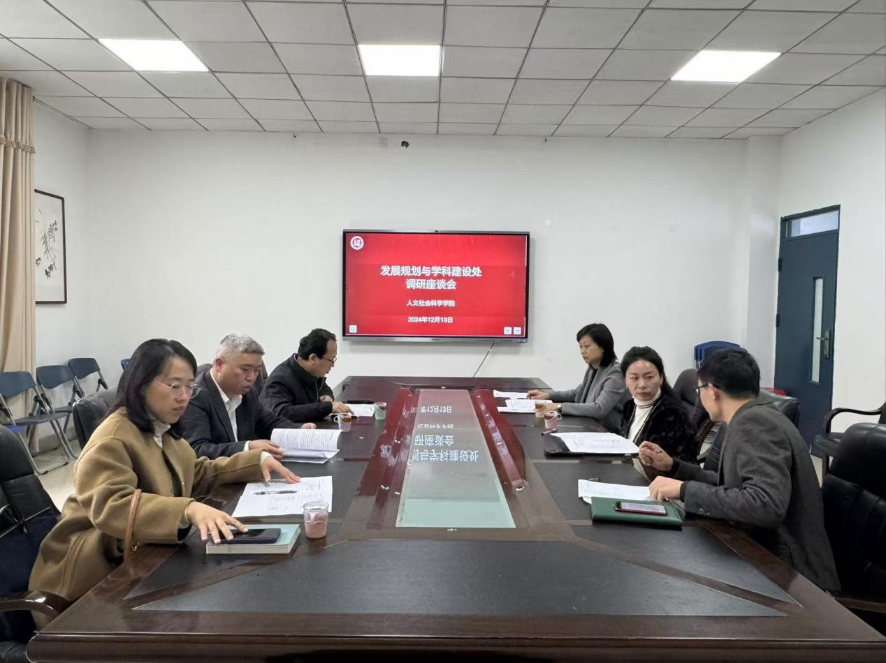 2024年12月13日下午,校发展规划与学科建设处邱挺处长、张友坤副处长、王晓真科长一行三人来色情游戏 开展调研座谈会。学院党委书记刘玮、院长吴慧娟、副院长林胜参加座谈。