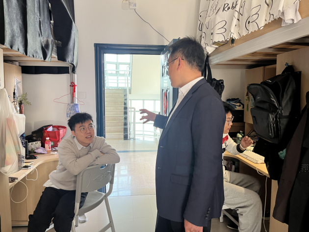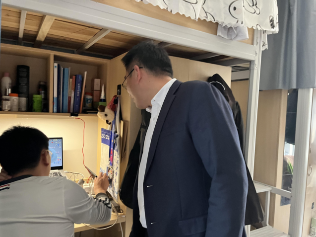 会前,赵燕松副书记走访学生宿舍,关心内务卫生与宿舍作息,了解同学们的学习与生活情况,勉励同学们保持良好个人习惯,在新的学期再接再厉、力争上游。