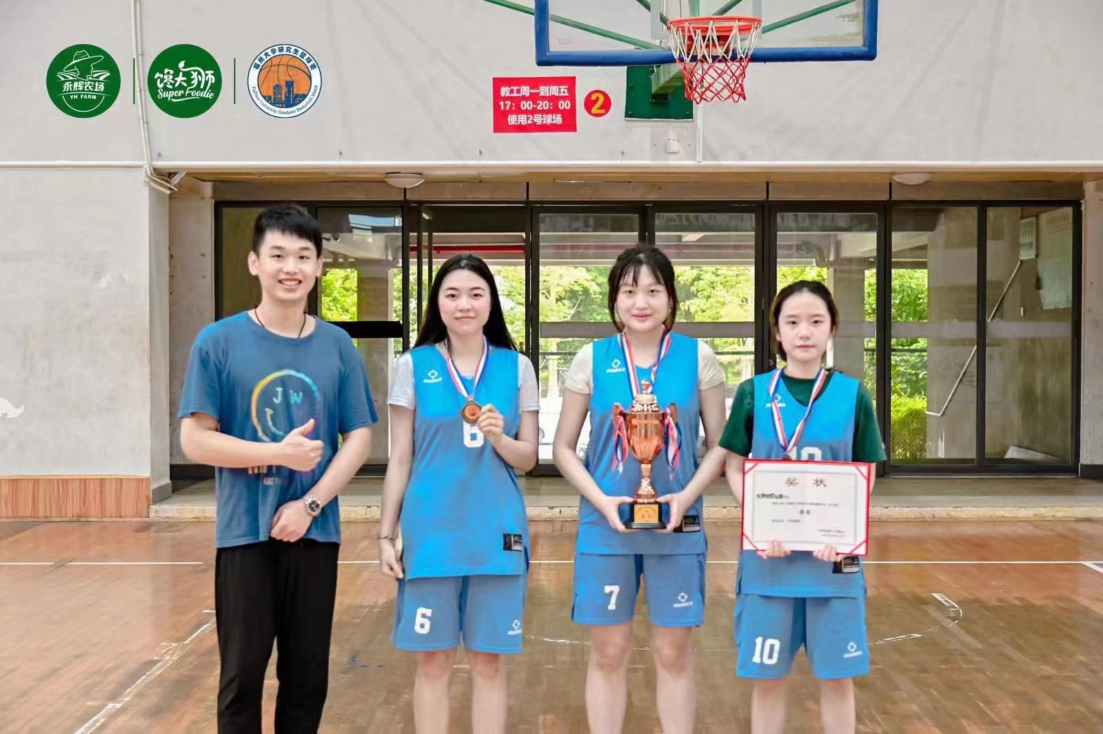 5月27日下午,2023年福州大学研究生篮球嘉年华女子篮球三人赛在旗山校区风雨操场室内篮球馆落下帷幕。我院研究生马笑语、刘远玲和范子欣一路披荆斩棘、顽强拼搏,以昂扬的斗志在球场迸发青春的活力,斩获季军。体现了学院研究生不负热爱、顽强拼搏、勇于挑战、奋发向上的精神风貌。
