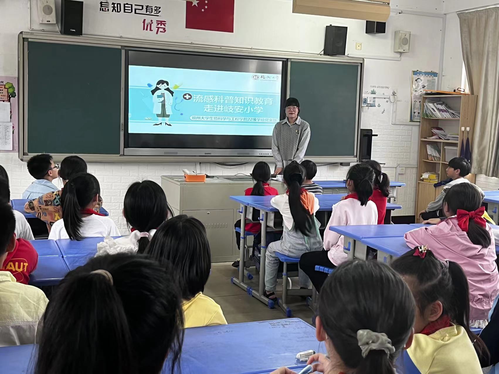 为响应国家全面推进健康中国建设,聚焦重点人群推进健康中国行动的号召,5月23日,生物科学与工程学院22级学硕党支部赴福州市闽侯县上街岐安小学进行科普宣讲活动,为岐安小学的小朋友们上了一堂“动静”结合的流感防控宣传以及手工皂制作的小课堂。