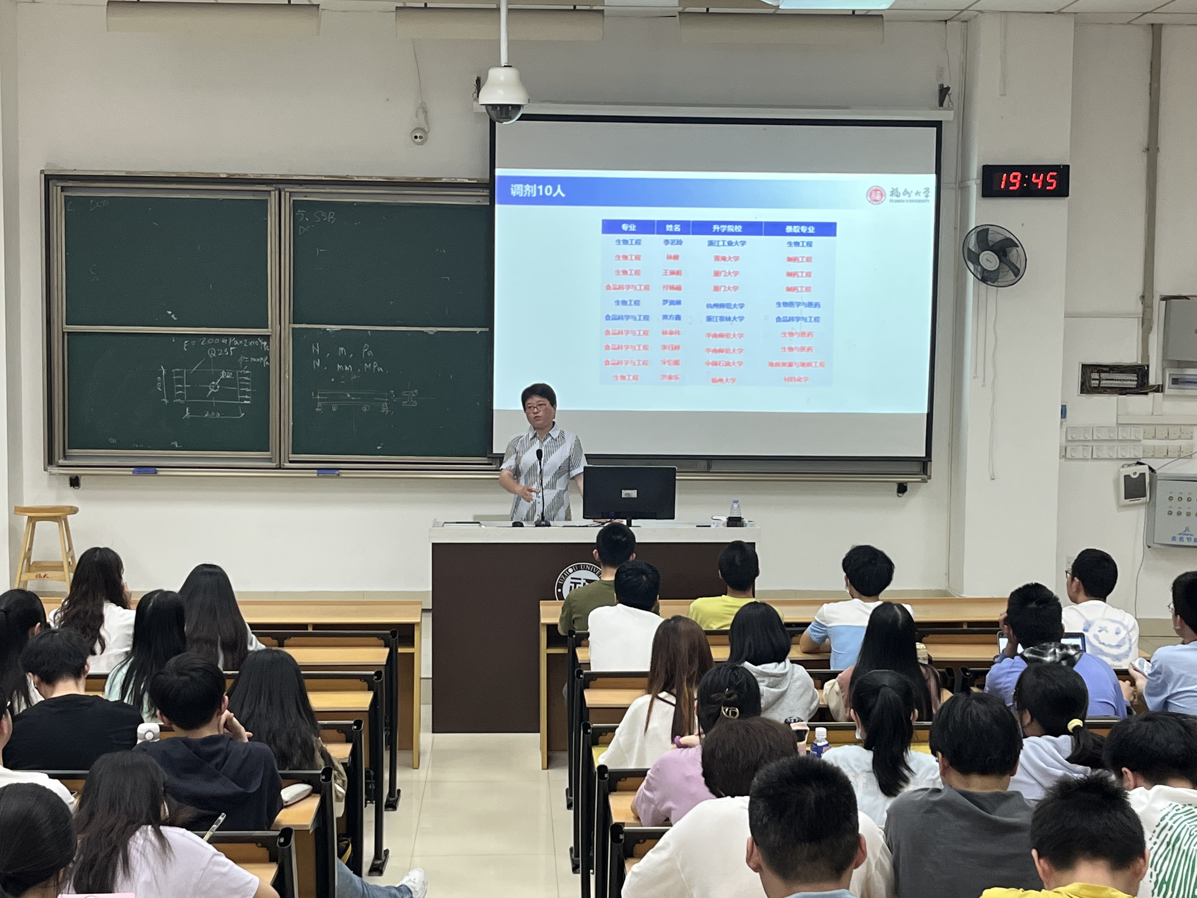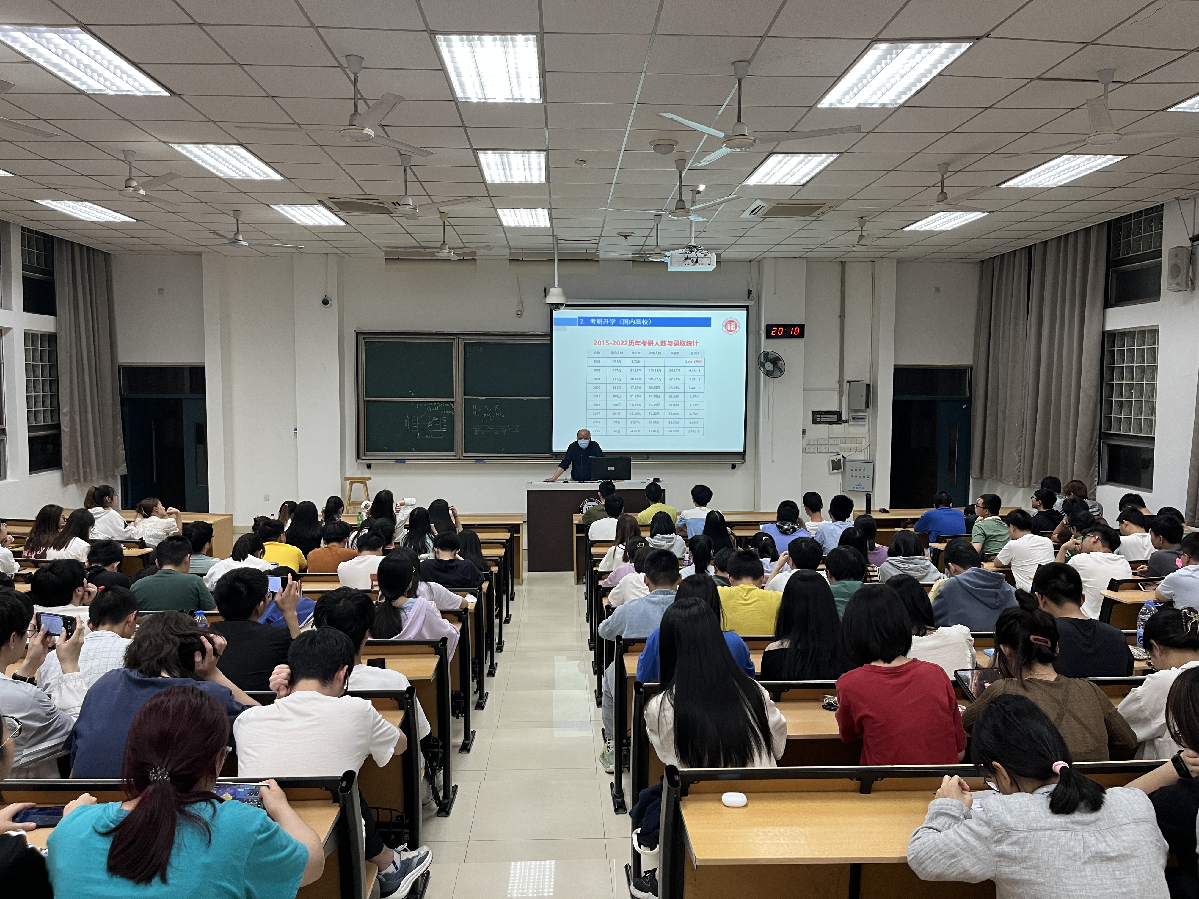 院党委曹仁秋副书记向大家介绍了推荐免试攻读研究生和考研两个升学途径,首先展示了福州大学推荐优秀应届本科毕业生免试攻读研究生的规则和要求,分析了近几年的考研趋势和学生升学就业情况统计表;针对同学们提出的考研问题进行了耐心细致解答,并结合实际录取情况对同学们提出了择校和跨考的注意点,提醒大家要认真考虑,谨慎决定。