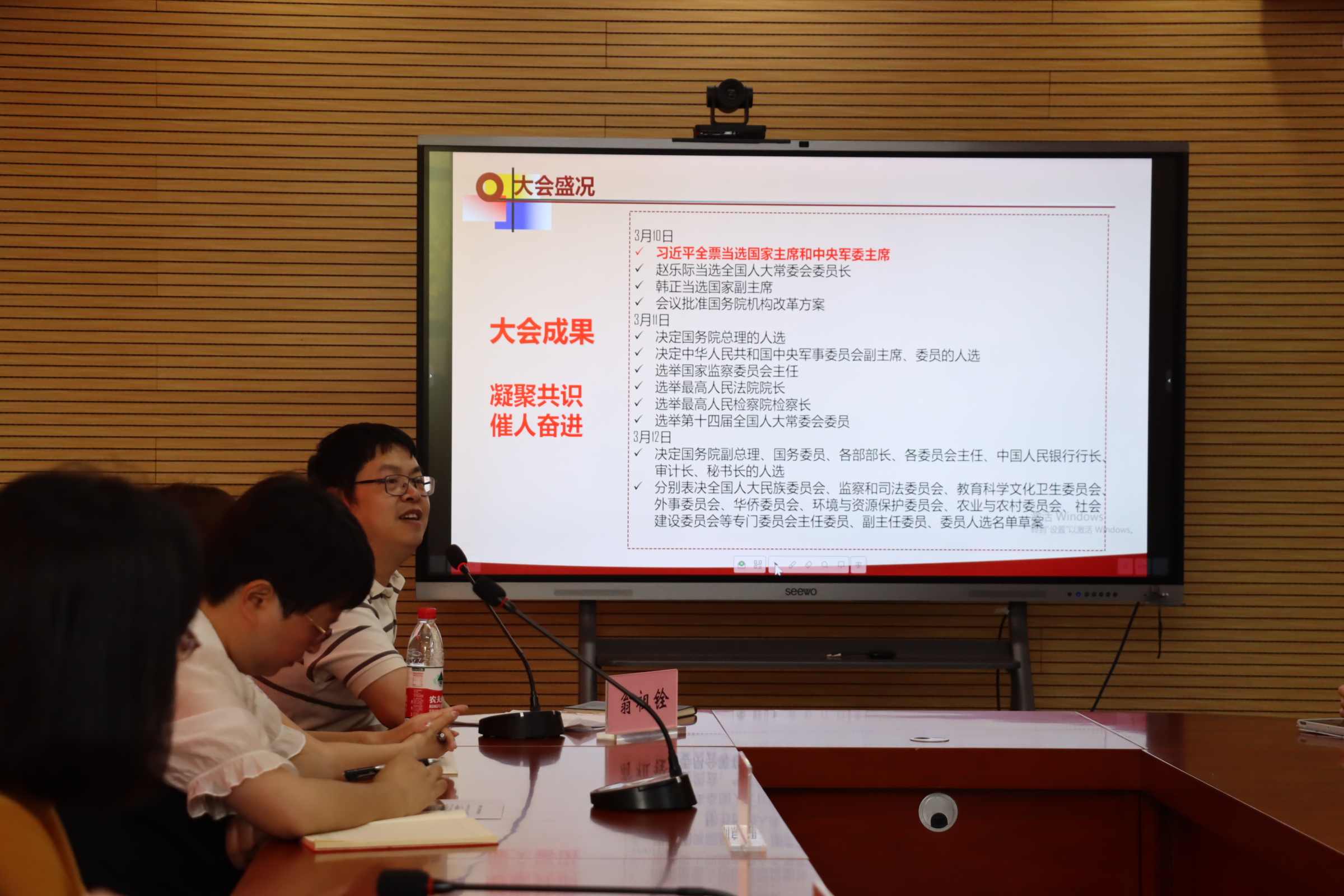 活动中,翁祖铨教授首先向同学们回顾了大会盛况、传达了会议精神,分享进京履职的心得体会,并结合自己重点参与的工作内容和大学生群体关心关切的重点话题与同学们进行了深入交流,勉励广大同学要听党话、跟党走,重学习善学习,注重日常积累、持之以恒努力,让青春在实现中华民族伟大复兴的征程中绽放绚丽之花。