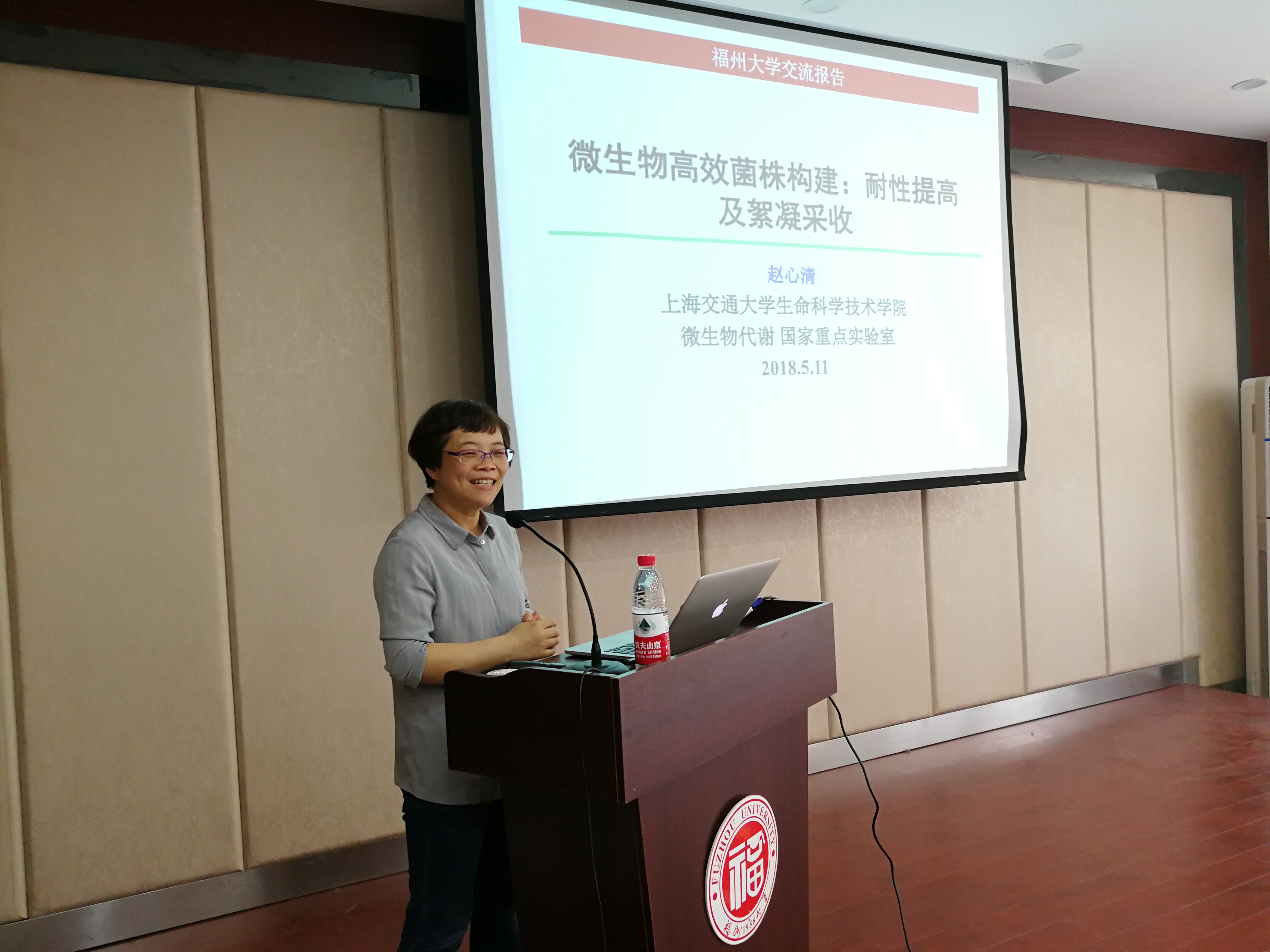 2018年5月11日下午,上海交通大学微生物代谢国家重点实验室赵心清教授应邀来我院进行学术交流,在学院柏物产学术报告厅为我院师生作了题为《微生物高效菌株构建:耐性提高及絮凝采收》的学术报告,报告会由陈剑锋教授主持。