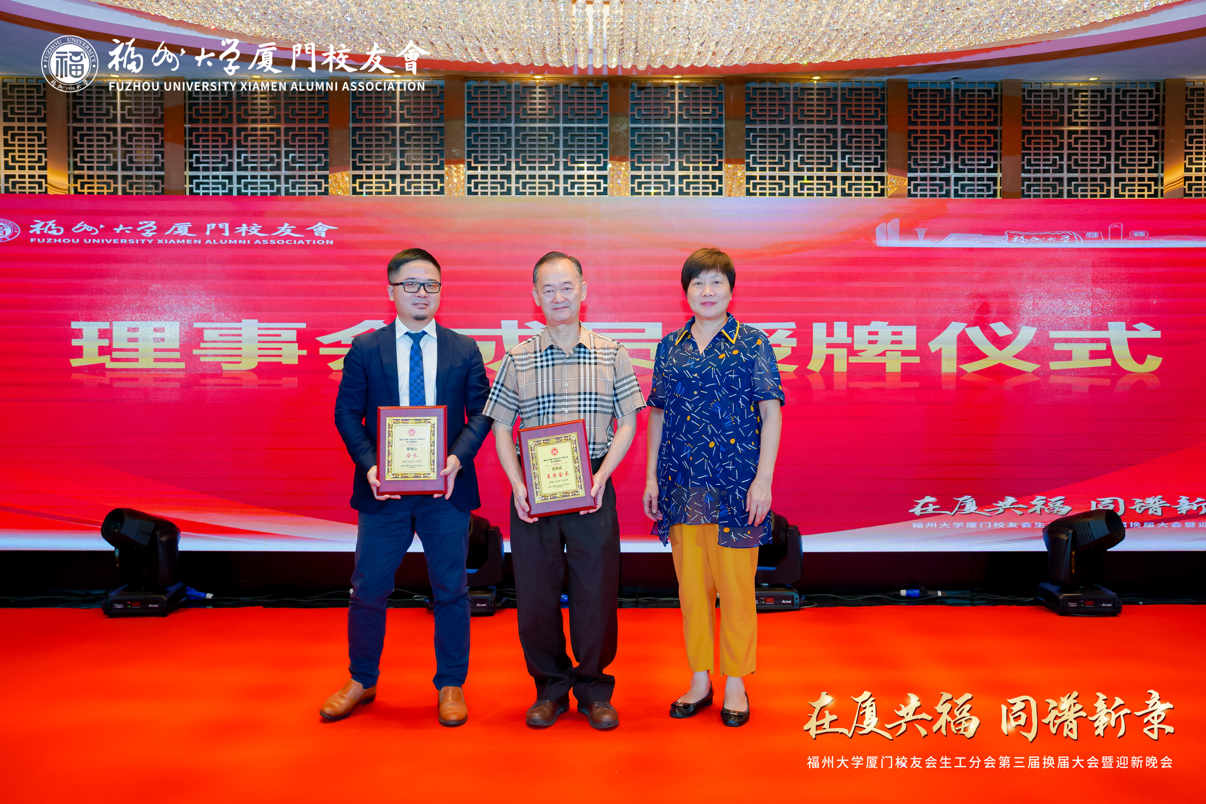 会上,名誉会长王庆云向新任会长蔡建山交接了会旗,与会领导向新任理事会成员颁发聘书。