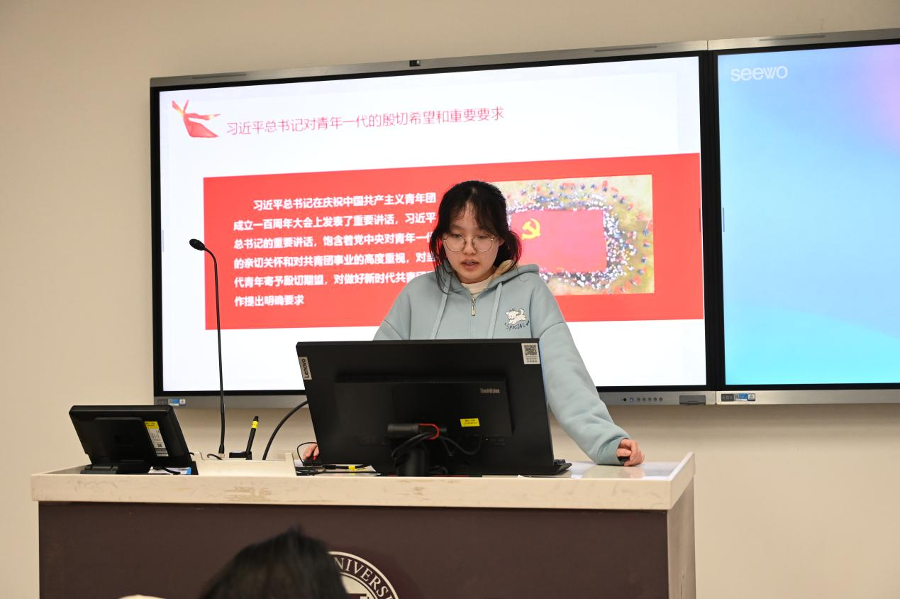 为进一步深化青年大学生理论宣讲工作,推动习近平新时代中国特色社会主义思想和党的二十大精神在广大青年学子中走深走实,在高校基层营造理论宣讲浓厚氛围,近日,我院面向2021级-2023级九个本科生团支部开展了院青马班成员到团支部宣讲习近平思想活动。本次活动,充分发挥了“青马”学员在理论学习方面的优势,发挥了“关键少数”带头作用,让广大青年大学生从优秀朋辈的角度深入了解到习近平新时代中国特色社会主义思想,为进一步培养一批信仰坚定、能力突出、素质优良、作风过硬的青年社会主义接班人,巩固党执政的青年基础,确保党的事业薪火相传、后继有人,做好思想孵化准备。“青马”班成员与各团支部直接的交流学习,传递着一份信任,一份责任,一种使命。在新时代青年的接续奋斗中,马克思主义薪火相传,生生不息。