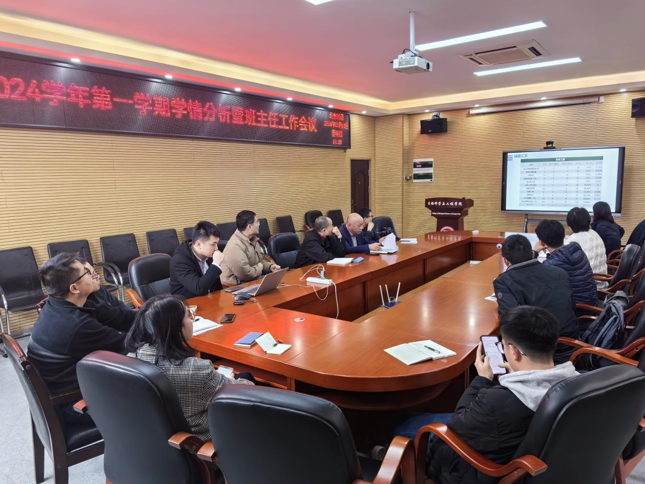 为进一步加强学风建设,凝聚“三全育人”合力,促进学生成长成才。3月14日下午,我院2023-2024学年第一学期学情分析暨班主任工作会议在嘉锡楼225会议室召开。会议由院党委曹仁秋副书记主持,王航副院长、本科生各班班主任及各年级辅导员参加会议。