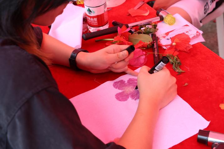 为进一步增强广大学子的心理健康意识,提升全体学生自我心理调适能力, 5月25日生工学院心理发展部参与协办校“5·25心理健康嘉年华”铜盘校区系列活动,开展“拓印植物的美丽”植物拓染活动。