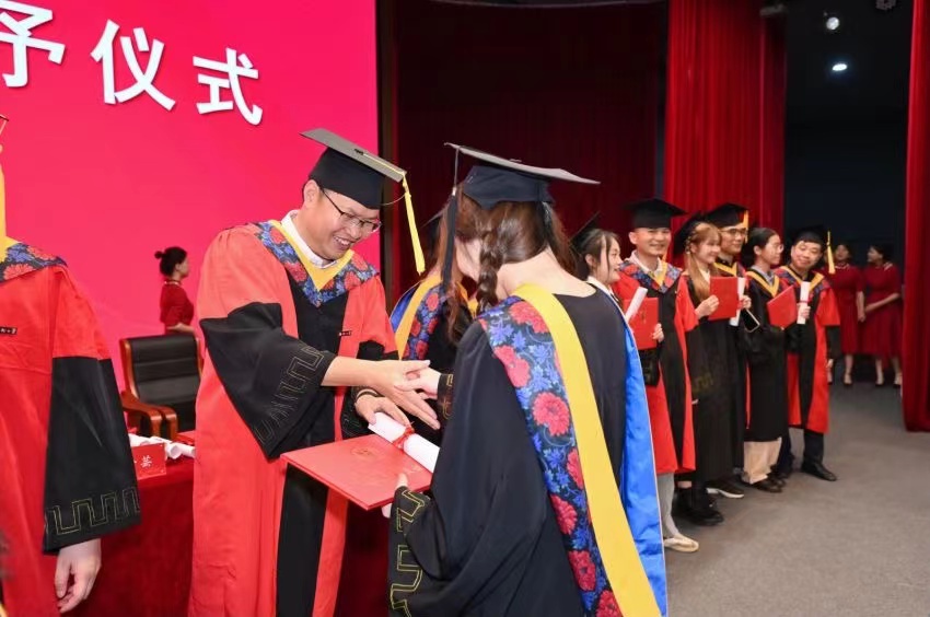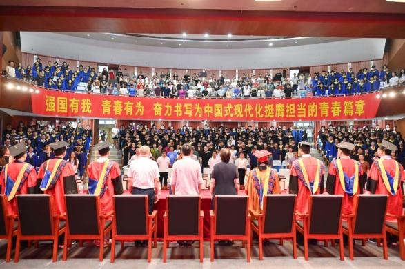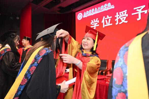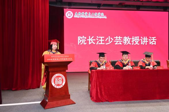 院长汪少芸教授代表学院全体教师向全体毕业生致以最衷心的祝福。她表示,同学们在大学期间,克服困难和迎接挑战中不断蜕变和成长,以崇高志向和扎实行动践行了“明德至诚、博学远志”的校训,展现了非凡的担当和作为。她以“青春”为题向全体毕业生提出三点寄语:一是青春当坚定理想,希望大家不忘初心、追求远大理想;二是青春当勤学笃行、希望大家博览善学、实践创新;三是青春当健康向上,希望大家强健体魄、身心健康。她深情寄语毕业生常回家看看,学院是大家永远的家。