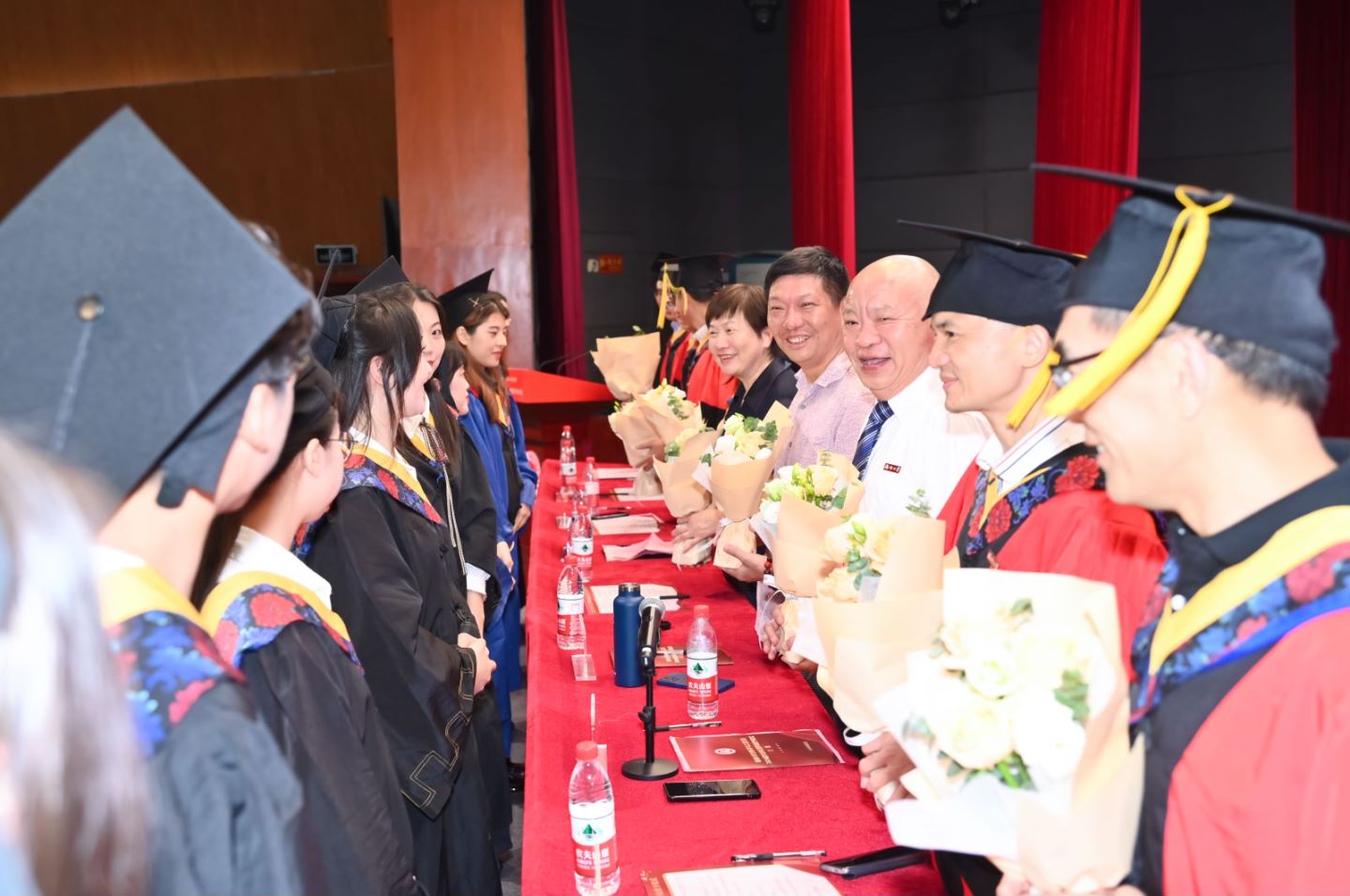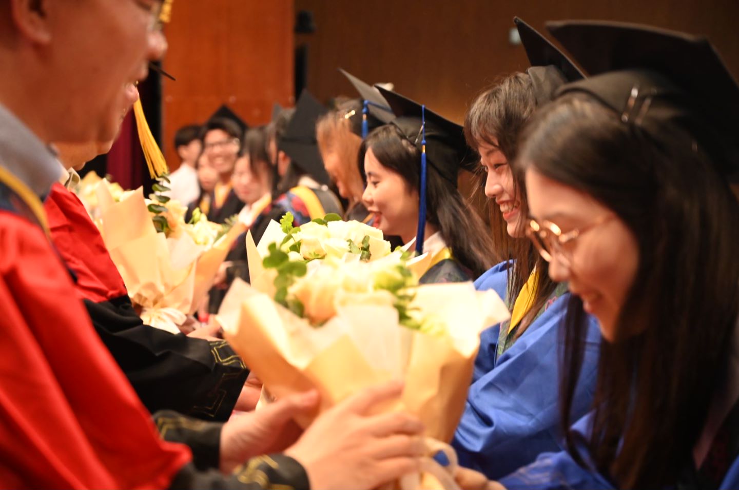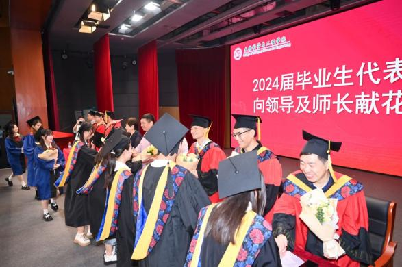 随后,2024届毕业生代表向领导及师长敬献鲜花,全体毕业生向老师肃立恭行谢师礼,表达学生心中的崇高敬意和真挚感谢。