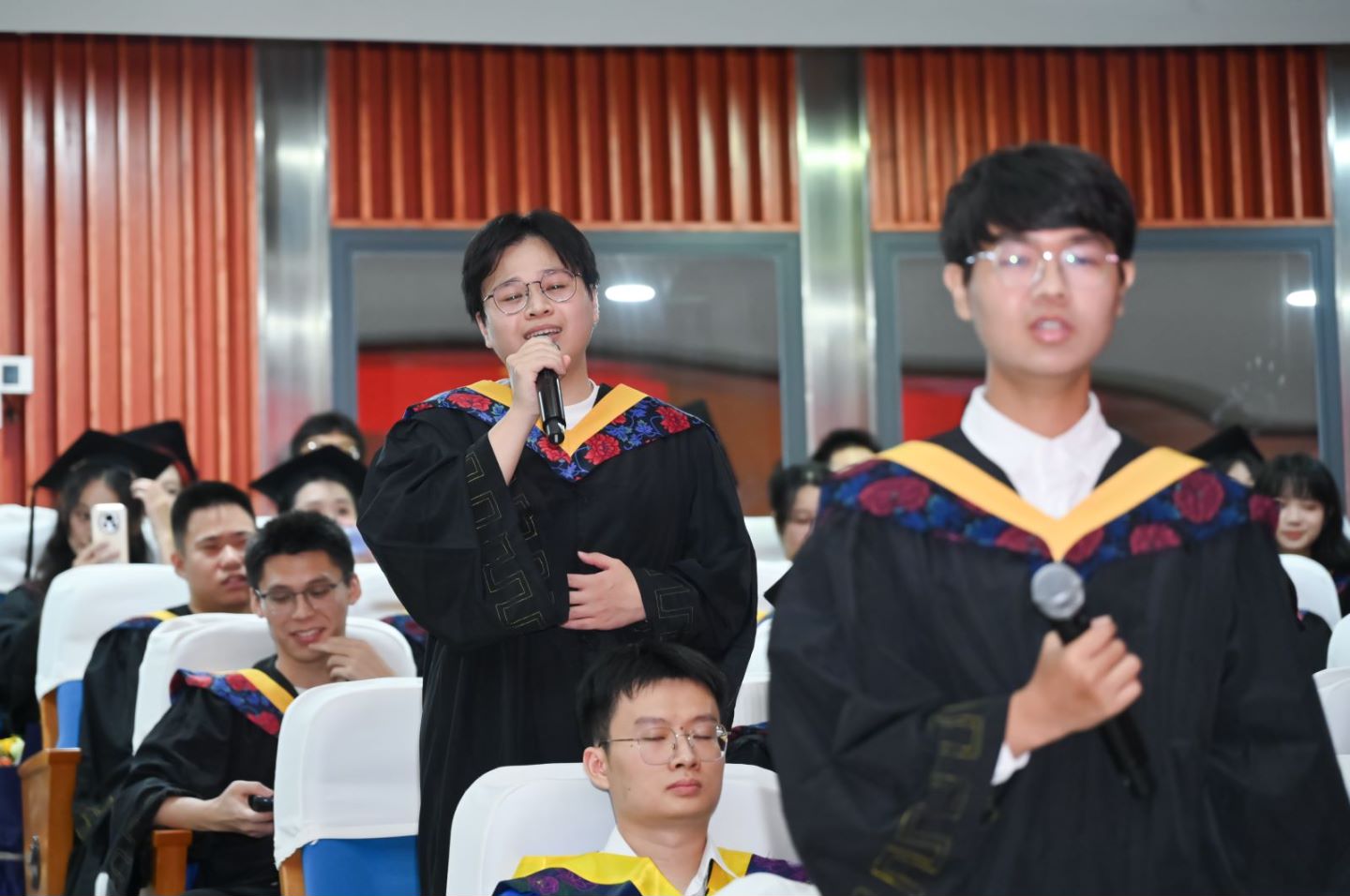 2020级本科生林颖同学作为2024届毕业生代表上台发言。她深情地回望了过去四年学习、生活、工作的点点滴滴,对学校的悉心培养和老师的无私奉献表达了深深的感激,并庄重承诺将继续秉持福州大学“明德至诚,博学远志”的校训,将福州大学的“三种精神”内化于心,外化于行,成为一名胸怀壮志、锐意进取、坚韧不拔的福大人。