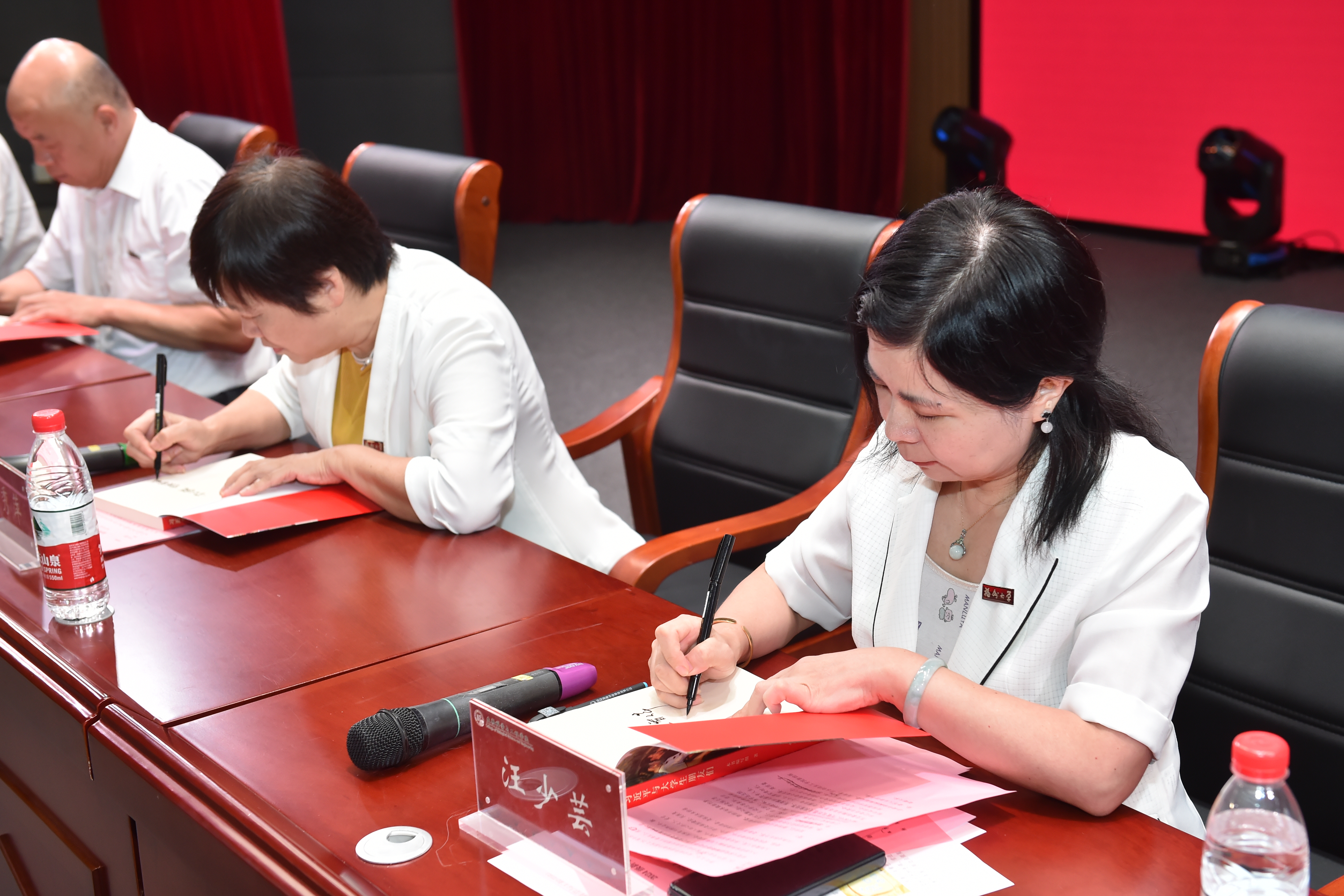 随后,院领导在《习近平与大学生朋友们》(第一、二卷)的扉页亲笔书写下对新生最真挚的寄语并与同学分享,字里行间透露着院领导们对生工学子成长成才的美好祝愿和希冀。最后,五位新生代表上台,郑重接受赠书并与院领导合影留念。