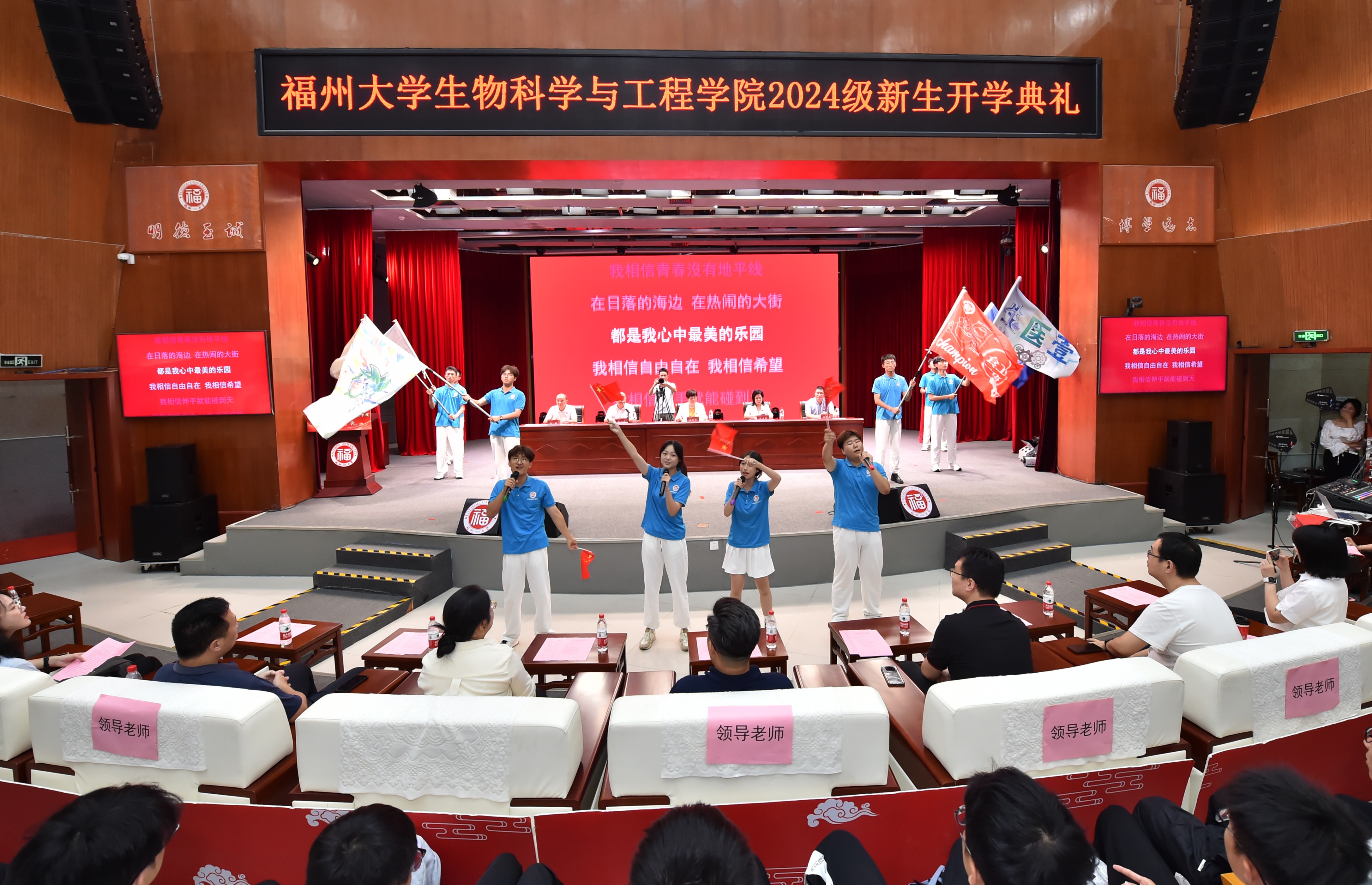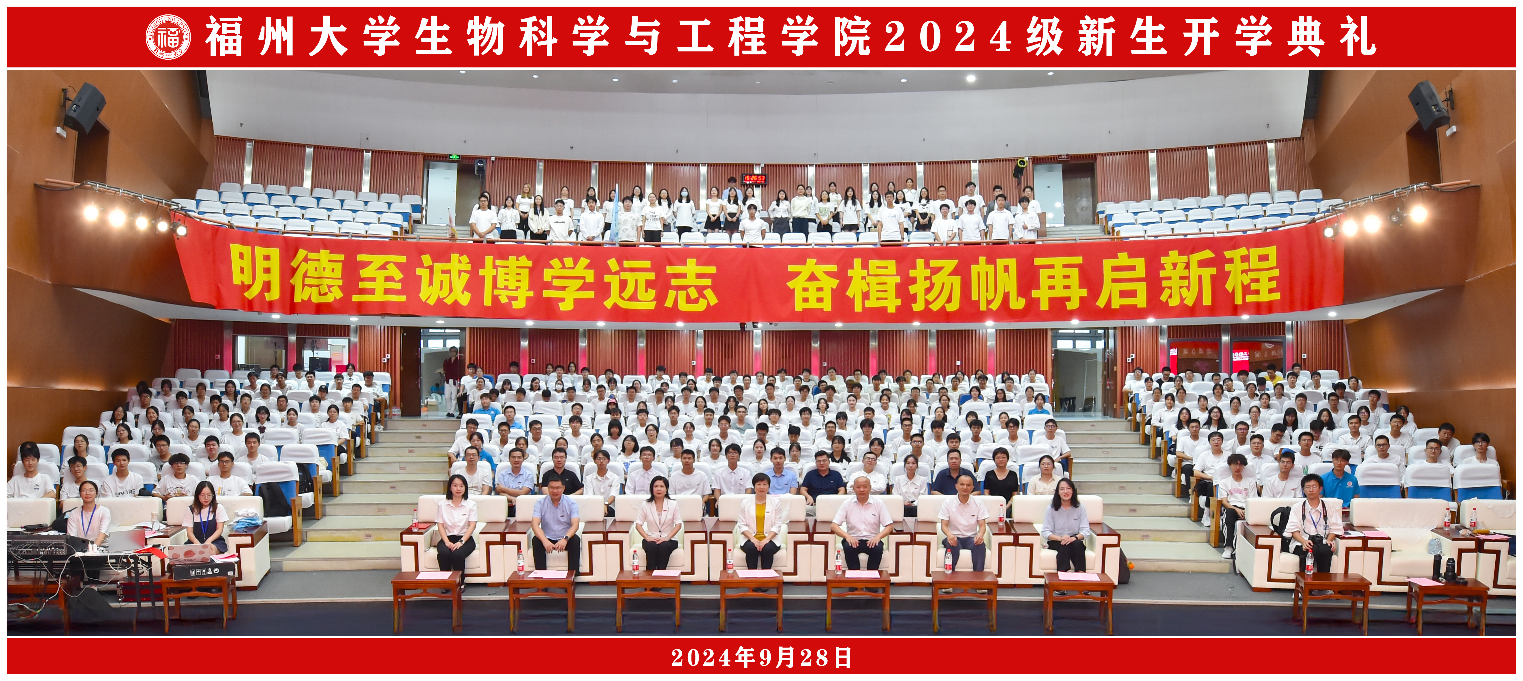 开学典礼在悠扬动听的《福州大学校歌》中落下帷幕。祝愿全体2024级新生能秉承“明德至诚、博学远志”的校训,弘扬福大“三种精神”,在福大生工书写属于自己的人生新篇章,在民族复兴的宏伟征程上跑好中国式现代化的接力棒,写就青春的华彩篇章!