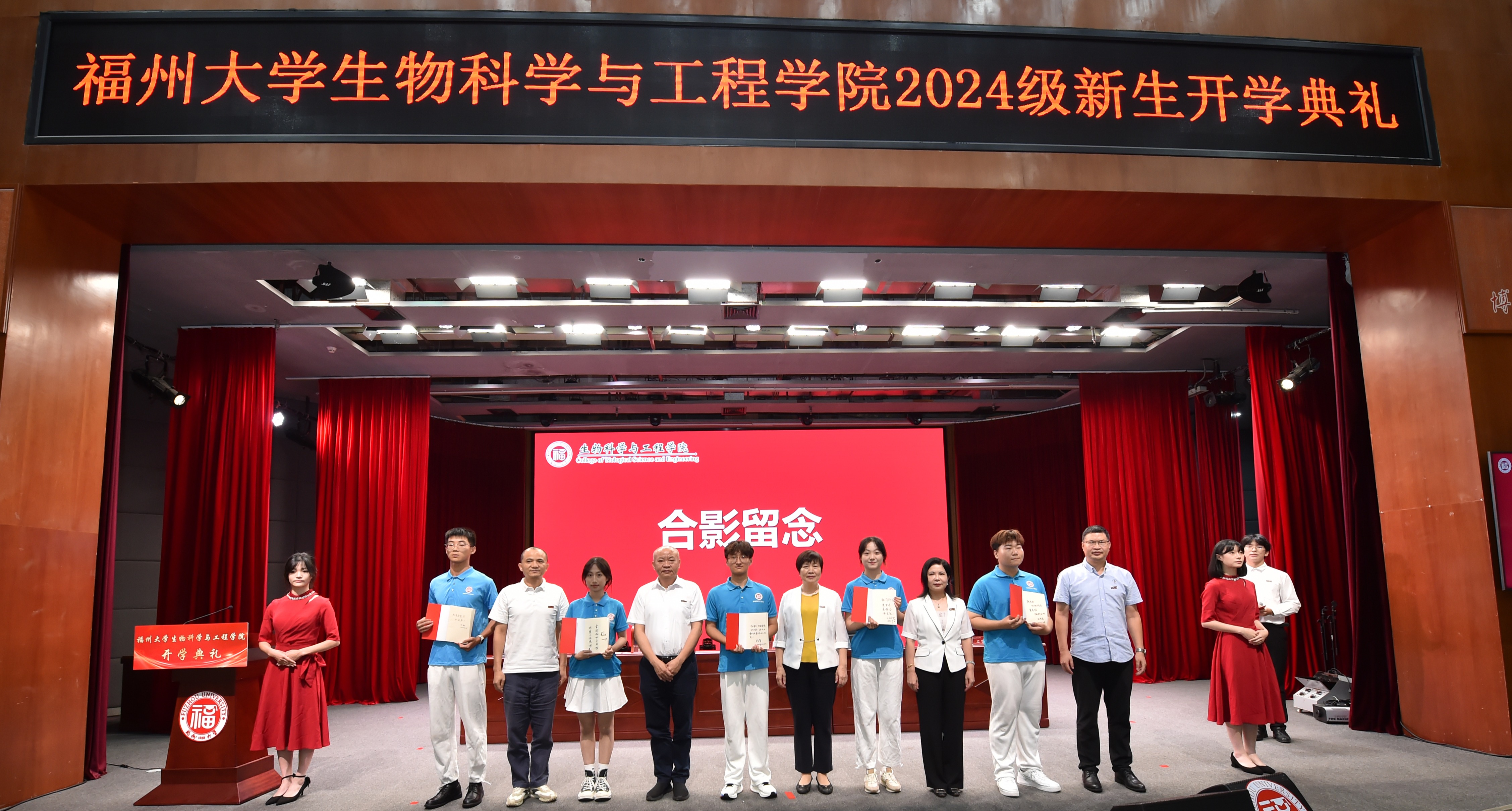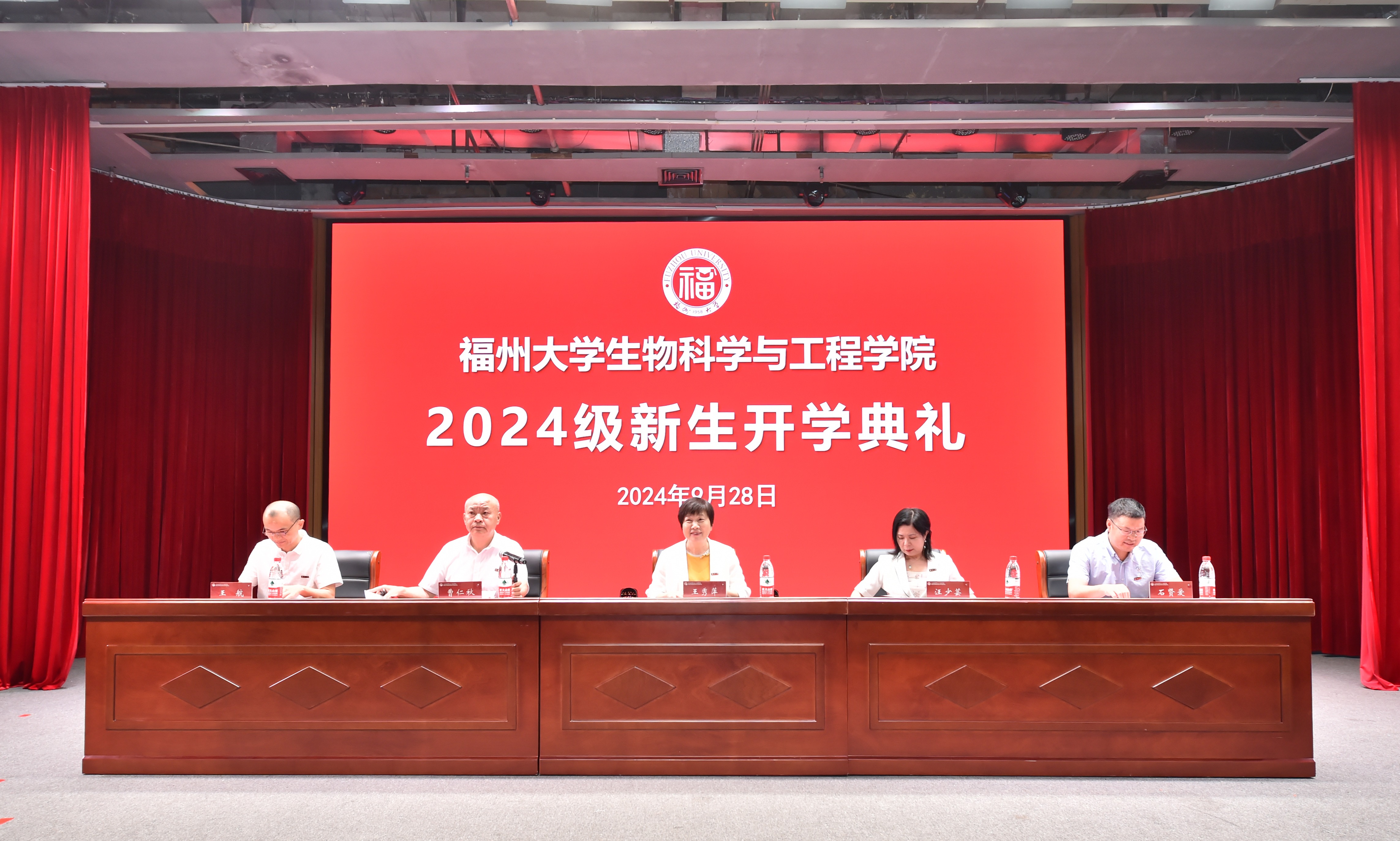 9月28日下午2:30,福州大学生物科学与工程学院2024级新生开学典礼在福州大学旗山校区图书馆博学厅举行。院党委王秀萍书记、院长汪少芸教授、院党委曹仁秋副书记、副院长石贤爱教授、副院长王航副教授出席典礼,学院中层干部、全体思政辅导员及学院2024级全体新生共计四百余人参加典礼。开学典礼由院党委曹仁秋副书记主持。