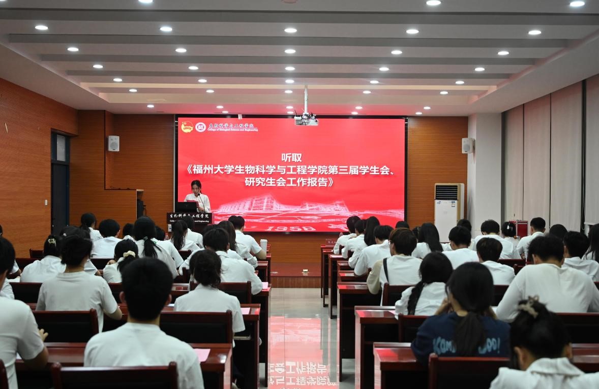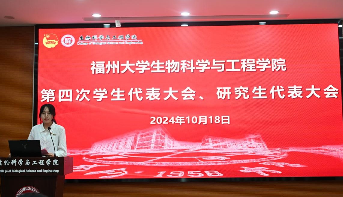 为深入学习贯彻落实学习全国学联二十七大精神、省学联十一大精神,进一步推进学院学生会、研究生会改革,团结全院青年学生跟党走,共谱学院发展新篇章,2024年10月18日,福州大学生物科学与工程学院第四次学生代表大会、研究生代表大会在生工北楼柏物产厅顺利召开。院党委曹仁秋副书记代表学院党委向大会致以热烈祝贺。院团委书记张晶、辅导员张凌拓、第三届学生会(研究生会)主席团成员及学生代表参加会议。