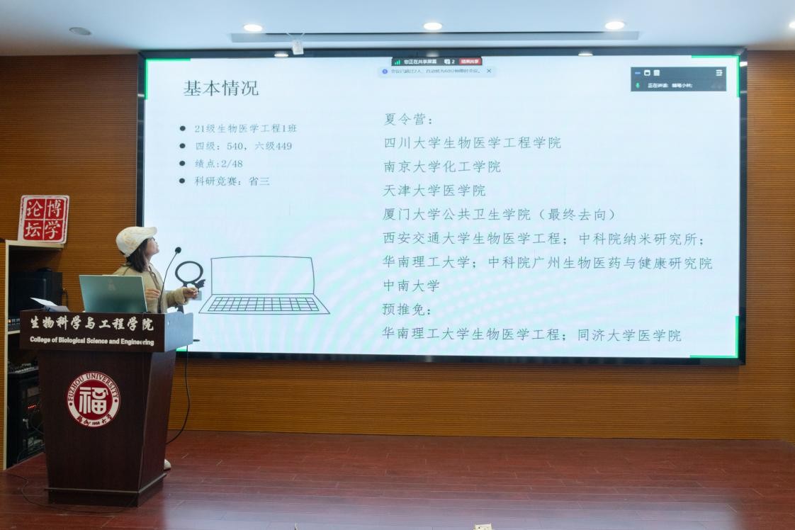 为发挥优秀学生代表的榜样引领作用,让同学们对保研途径有更深刻的了解,11月22日晚上7:00,生工学院学习部于生工北楼柏物产厅举办了一场保研经验分享会。本次分享会邀请了成功保研至知名高校的的2021级本科生——余安琪、陈文杰和程奕凯等三位同学。他们不仅分享了保研成功的宝贵经验,还提供了详尽的备考指南和注意事项,让同学们对未来学涯发展有了更清晰的规划。