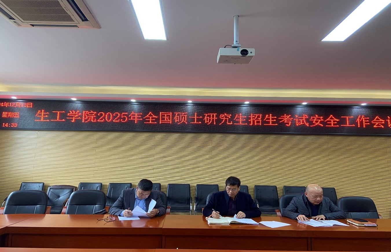 2024年12月13日,学院2025年全国研究生招生考试安全工作部署会在院会议室召开。此次会议旨在确保硕士研究生招生考试工作的安全、有序、高效开展,为广大考生营造公平公正的考试环境。院党委书记李礼建、副书记曹仁秋、副院长石贤爱,院教学办、院学工办相关工作人员参加了会议,会议由院党委书记李礼建主持。