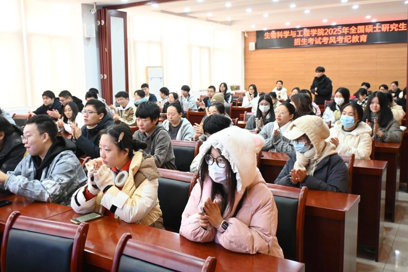 为进一步严肃考风考纪,助力考研同学做好全方位应考准备。2024年12月16日,院党委副书记曹仁秋在学院柏物产厅组织召开2025年全国硕士研究生招生考试考风考纪教育动员大会,毕业班辅导员和学院80余名备考同学参加了教育活动。