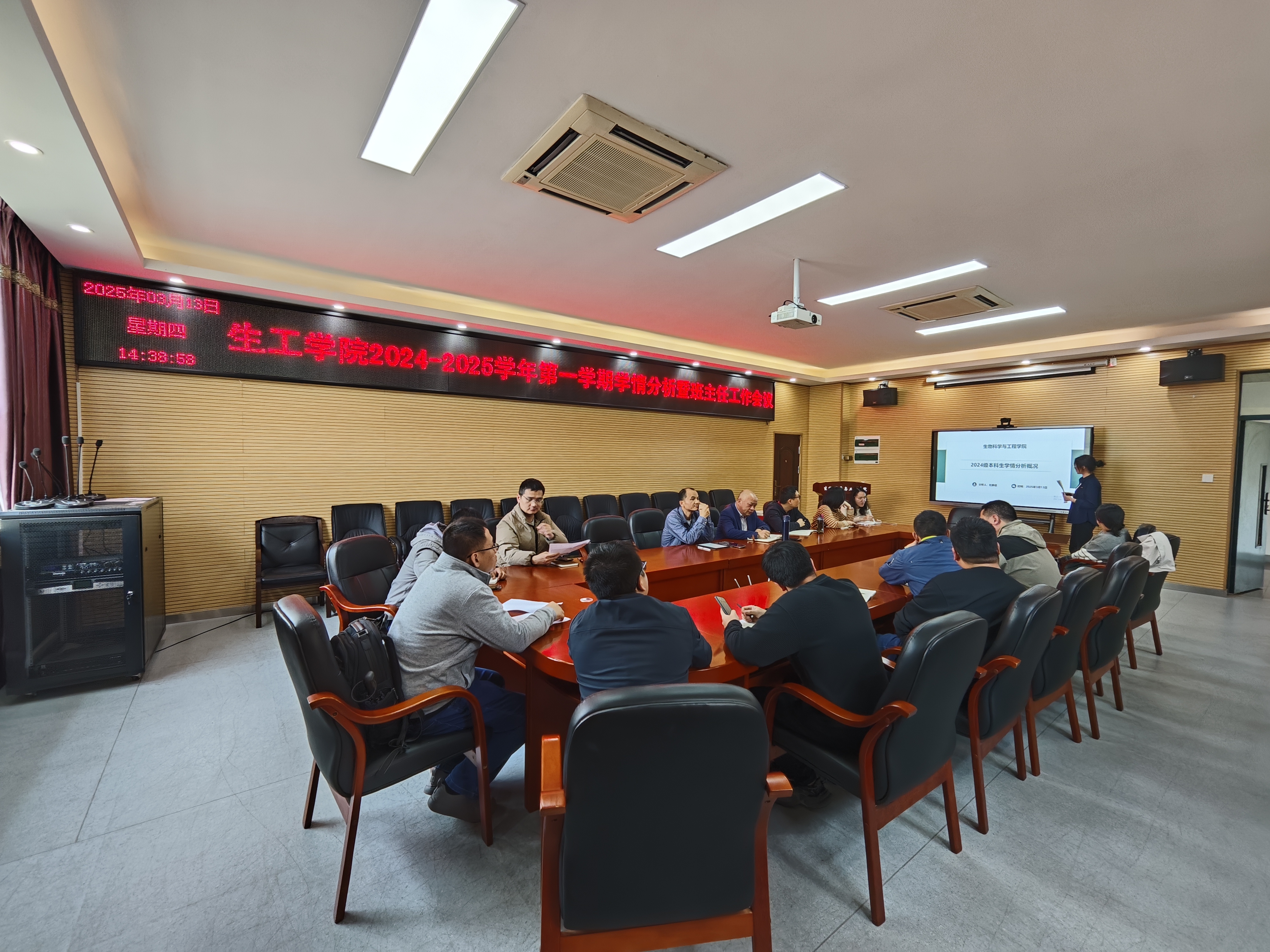 为落实立德树人根本任务,切实提升“三全育人”工作实效,进一步推动学院学风建设。3月13日,学院2024-2025学年第一学期学情分析会暨班主任工作会在嘉锡楼225会议室召开。会议由院党委副书记曹仁秋主持,副院长王航、各年级辅导员及全体班主任参加会议。