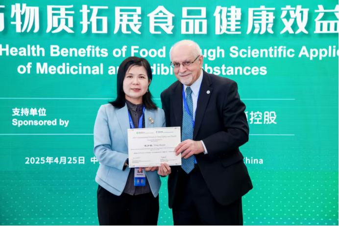 近日,我院汪少芸教授受邀参加2025年国际食品安全与健康大会并就食药物质拓展食品健康效益主题做了会议报告,报告由加拿大纽芬兰纪念大学生物化学系杰出学者Fereidoon Shahidi教授主持(Fereidoon Shahidi, University Research Professor & Distinguished Scholar of Department of Biochemistry, Memorial University of Newfoundland)。报告后Fereidoon Shahidi教授为汪少芸教授颁发证书。