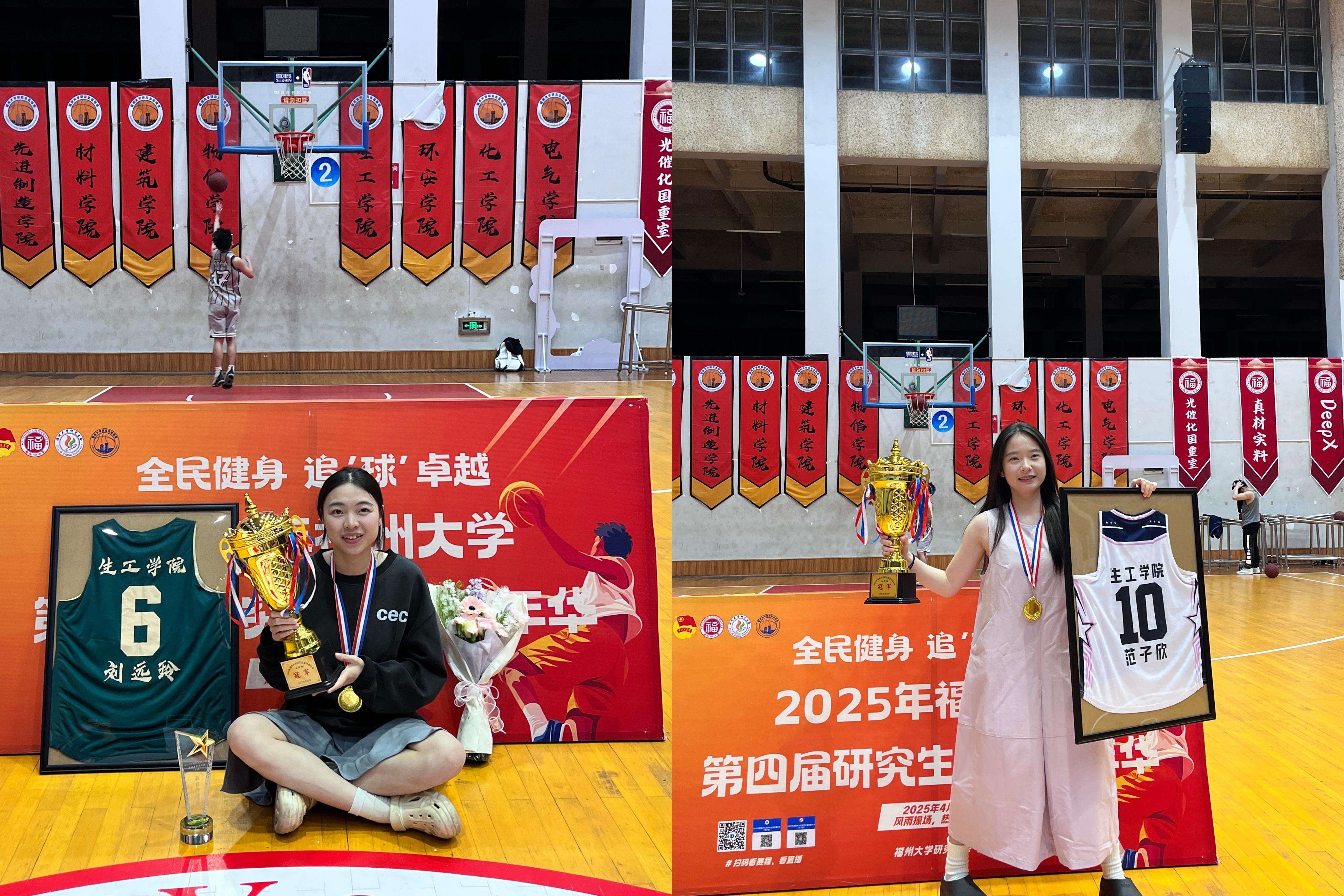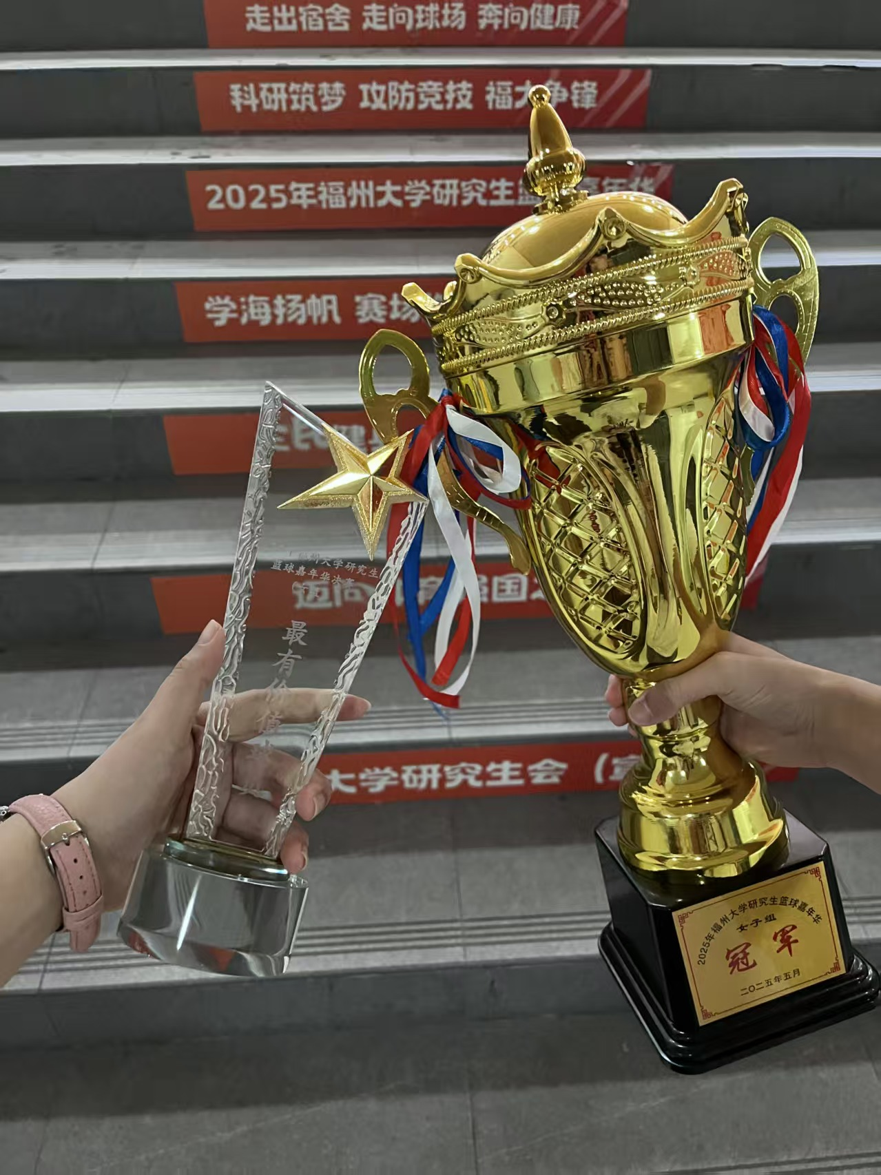 这是我院研究生女篮继在2024年研究生篮球嘉年华女子篮球比赛夺冠后,再次夺冠,成功实现卫冕!冠军奖杯,不仅是对我院女篮实力的认可,更是激励全体师生奋勇向前的动力。未来,我院将继续深入推进“以体育人”工作,引领广大学生发扬拼搏精神,在更多赛场上绽放光芒,书写属于福大生工的辉煌篇章!
