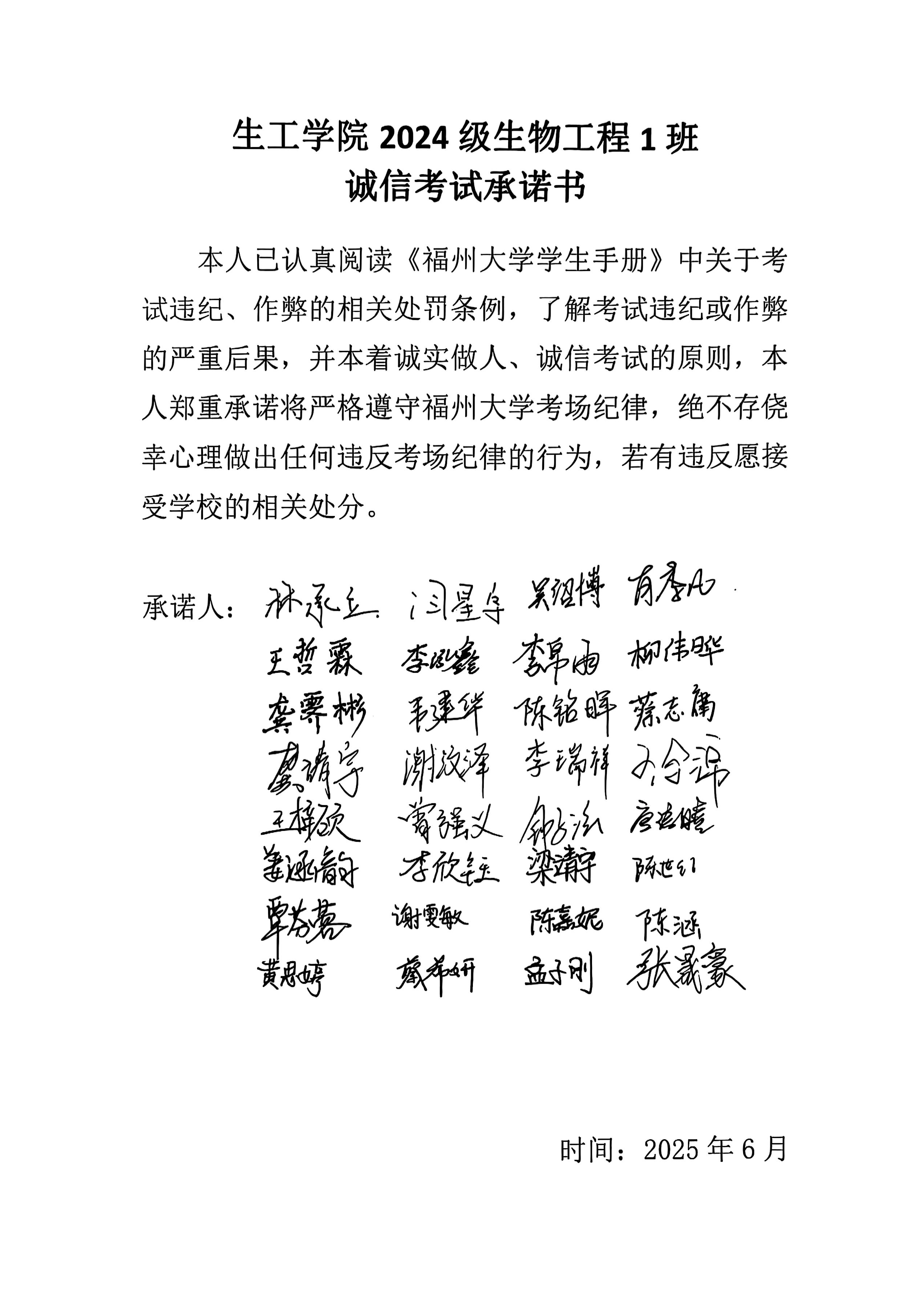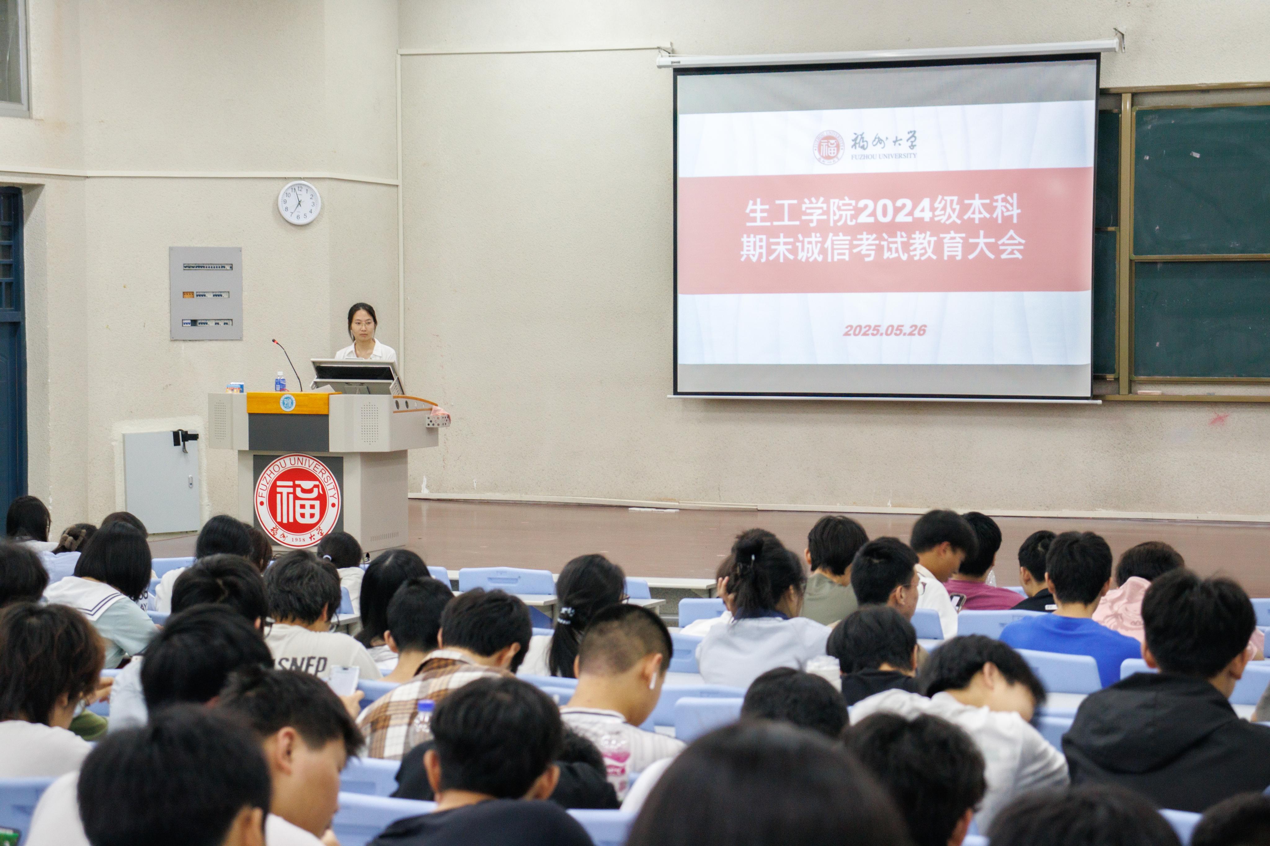 在期末考试来临之际,为倡导诚信应考,维护考试的公平公正,生工学院2024级本科生年段组织了“生工诚考·筑梦前行”考风考纪教育活动。通过召开年级大会、组织主题班会等形式,详细解读了学校的考试规章制度和违纪处理办法,让学生深刻认识到考试作弊的严重性和危害性。同时还要求学生签署诚信考试承诺书,强化纪律意识,倡导以真实水平应考,以诚信品格立身。这些举措的实施,有效树立了诚信应考的考试新风尚,为公平公正的考试环境提供了有力保障。