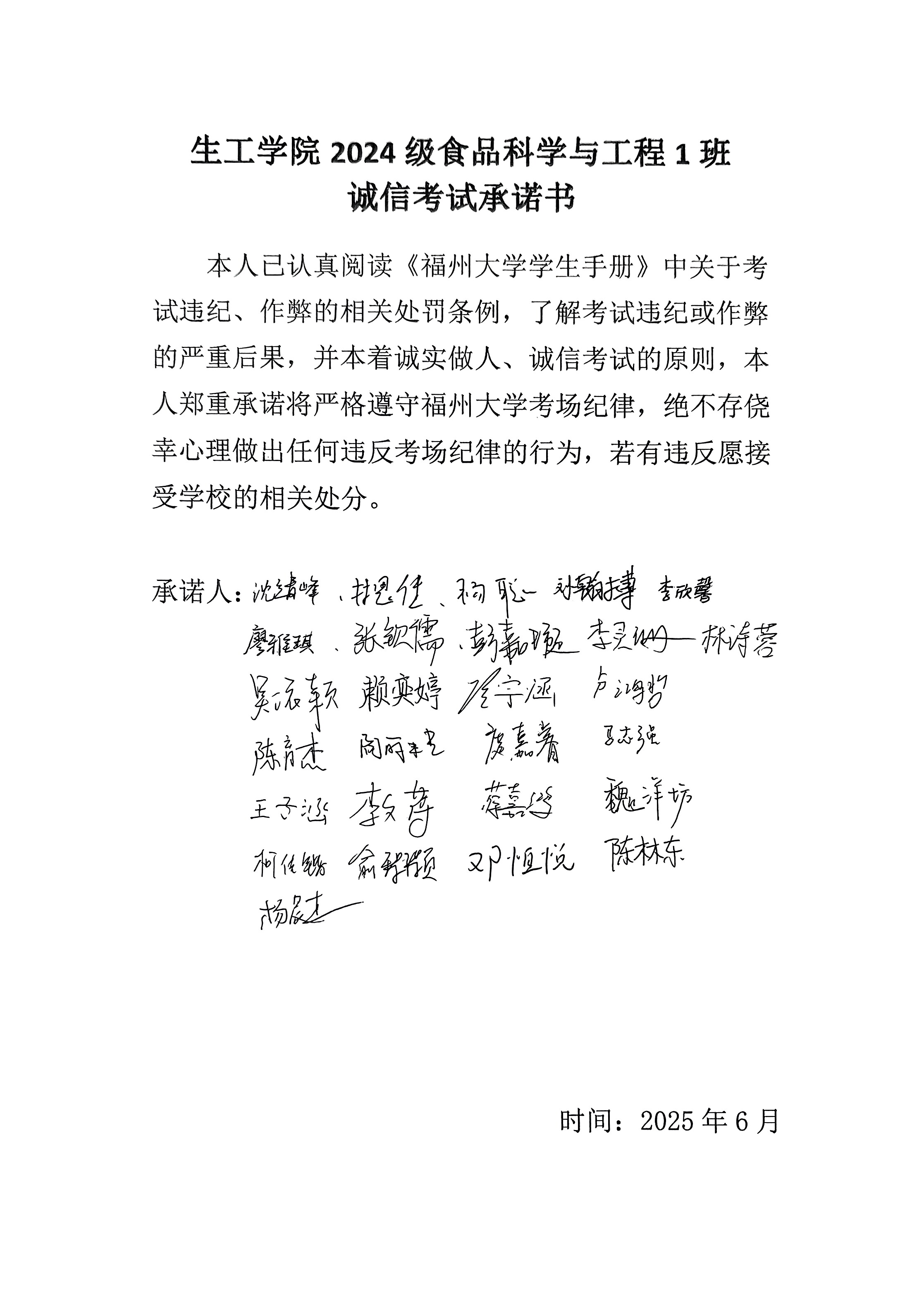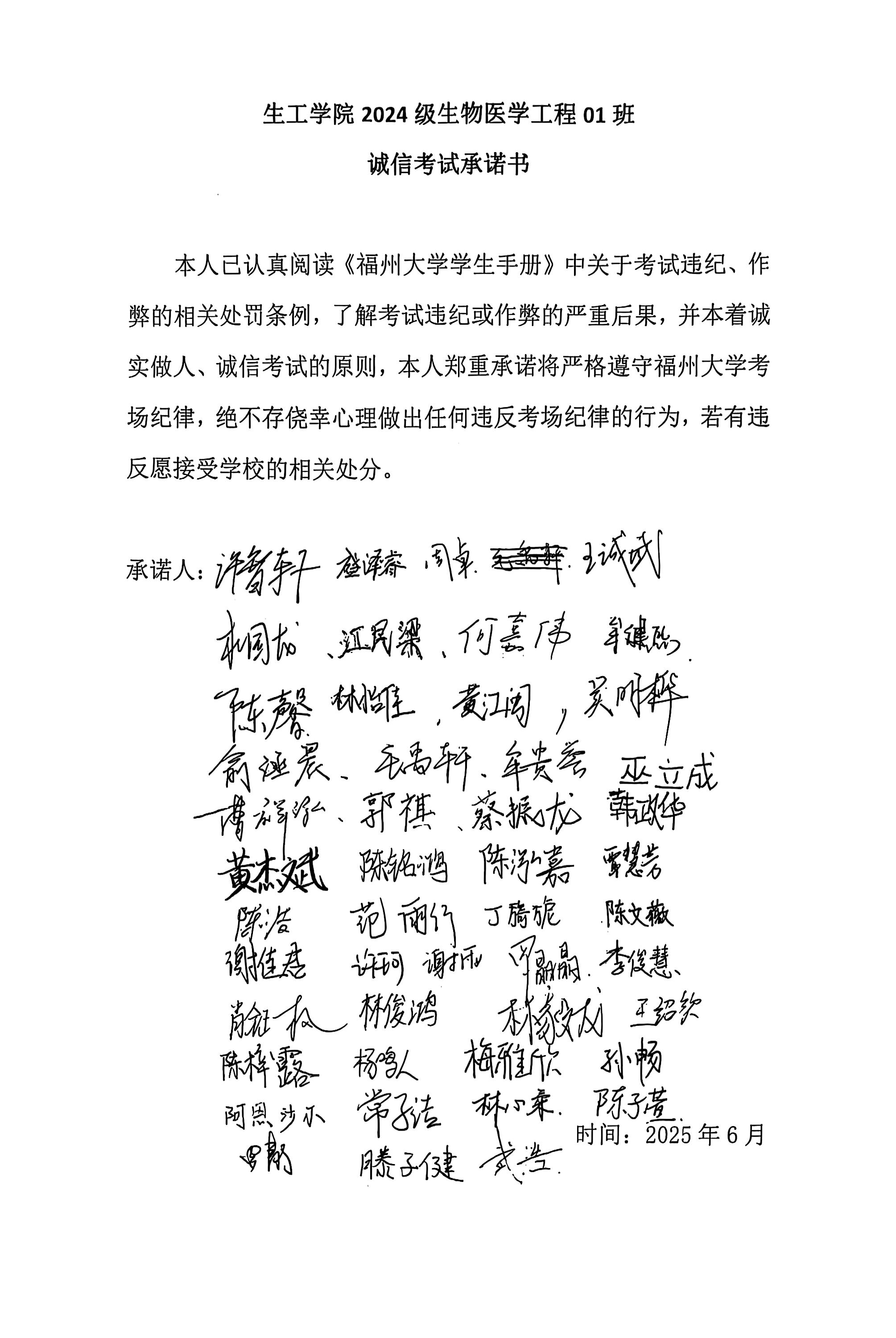 (各班签订诚信承诺书)