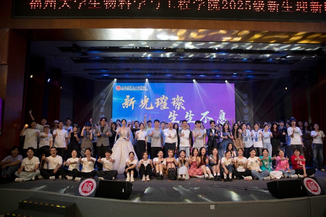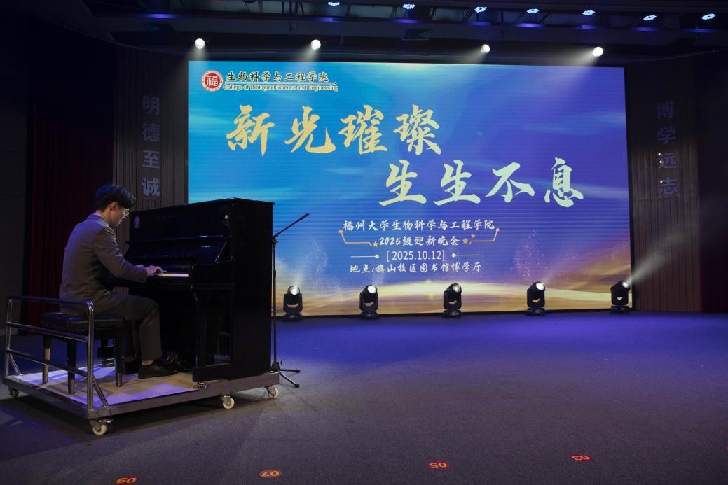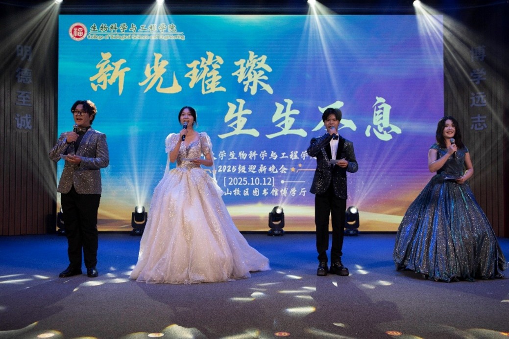 2025年10月12日,福州大学生物科学与工程学院师生同聚在福州大学图书馆博学厅,隆重举行2025年“新光璀璨,生生不息”迎新晚会。出席本次活动的嘉宾有院党委曹仁秋副书记、院团委副书记张凌拓老师、院辅导员邓屹老师、院辅导员杜美佳老师。