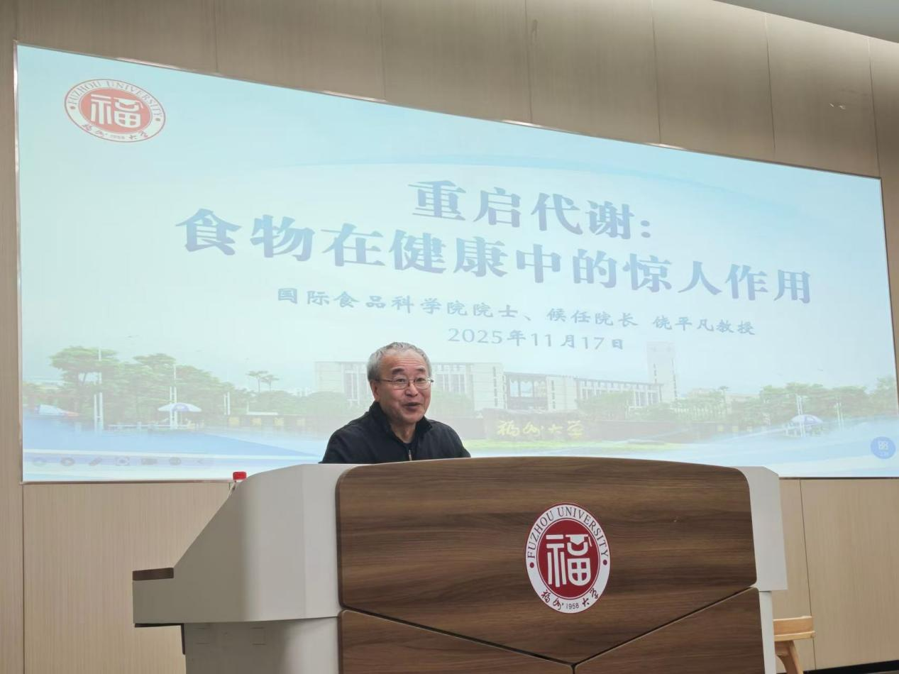 为启迪新生专业思想,引领生工学子深入探索生物科学与食品领域的前沿动态,2025年11月17日晚,国际食品科学院院士、候任院长、我院1978级食品工艺专业校友饶平凡教授做客《生工讲坛》,为我院2025级新生带来主题为《重启代谢:食品在健康中的惊人作用》的精彩学术报告。报告会由院党委曹仁秋副书记主持,学院刘树滔教授、杜美佳老师和180多位新生共同聆听了报告。