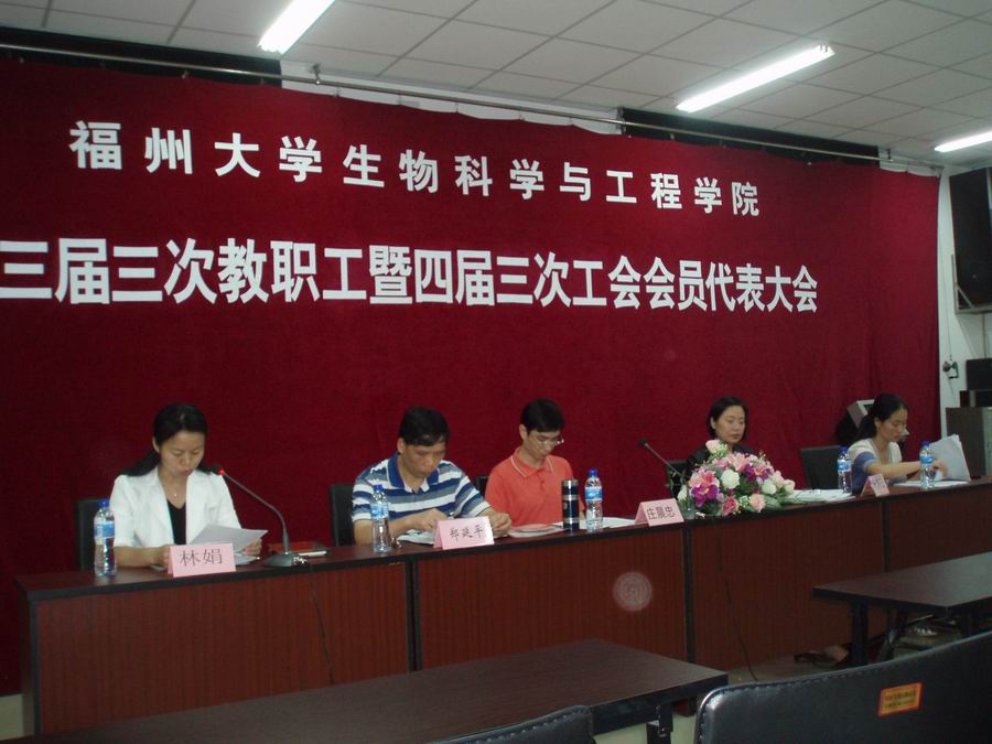 生物科学与工程学院三届三次教代会暨四届三次工代会于2010年9月30日下午在学院教工活动室召开。