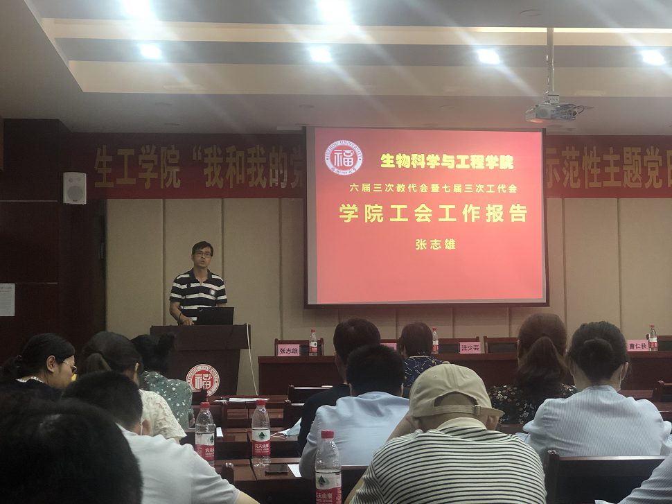 为贯彻落实党的十九大、中国工会十七大及《工会法》精神,推动教职工行使民主权利,加强民主管理和民主监督,5月13日下午,生物科学与工程学院六届三次教代会暨七届三次工代会在柏物产学术报告厅召开。