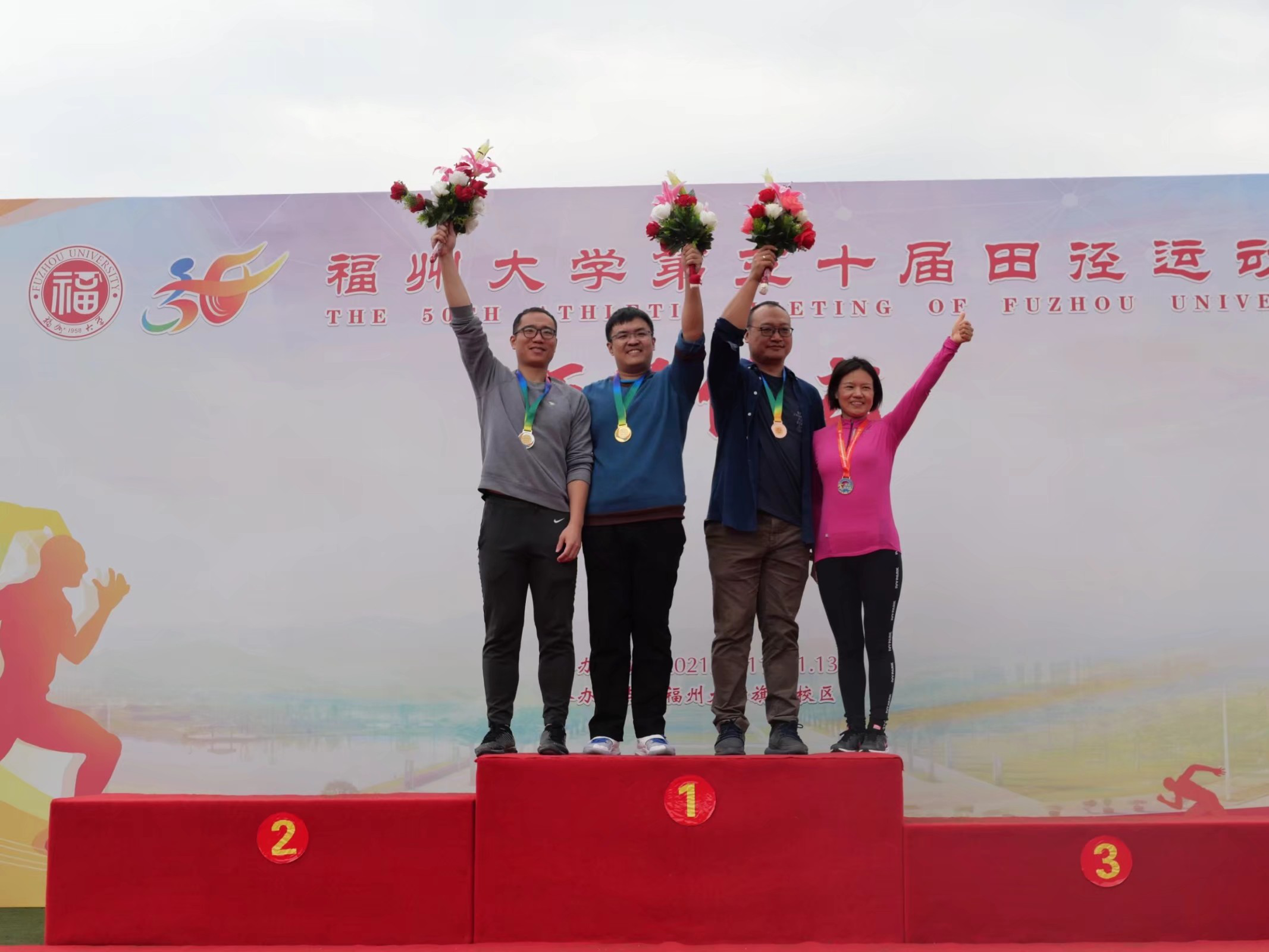 在刚刚落幕的福州大学第50届田径运动会上,我院教工组在22个参赛单位中获得团体第七名的好成绩,成绩继续保持在学校第一方阵!在闭幕式上,我院还获得了两年一次的福州大学第五届“和谐杯”教职工团体竞赛第三名,也创下了该项评比迄今为止的历史最好成绩。