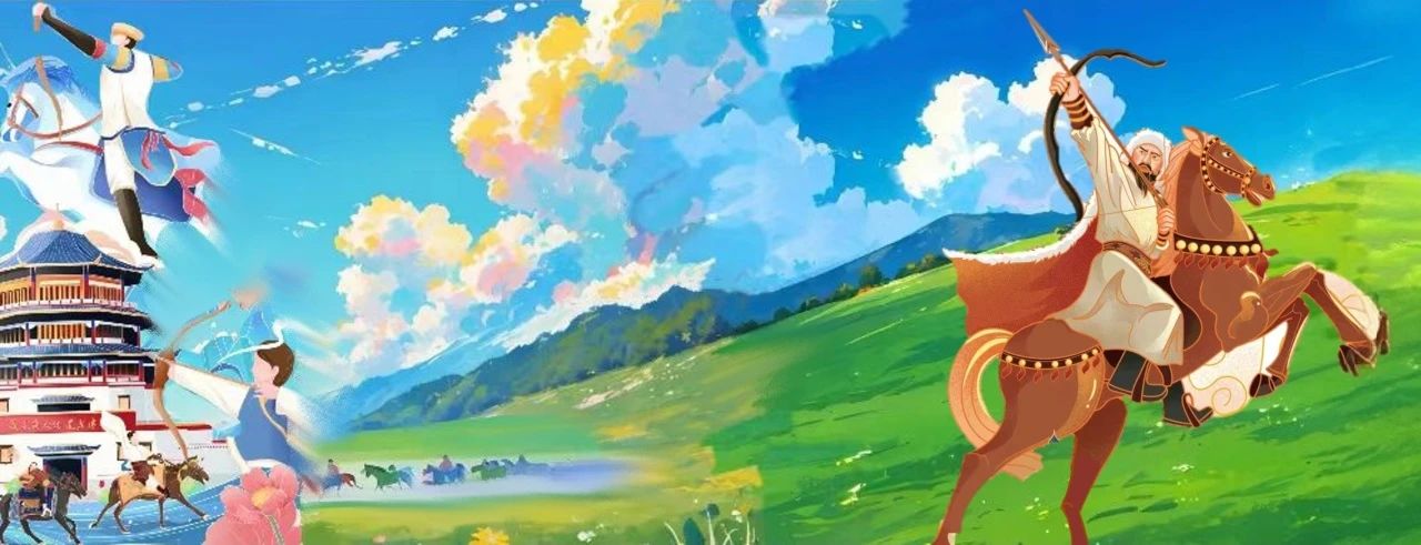 春日草原板块,主要描绘了发生在草原上的骑射运动,象征了生工学子"骏马奔腾踏边疆,少年意气风发扬"的英姿。