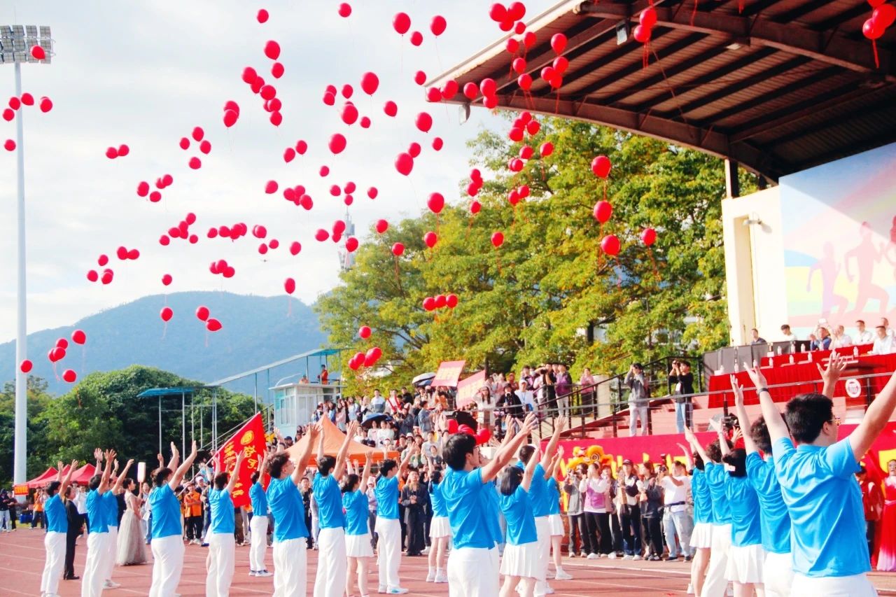 生工代表队身着上蓝下白的服装,步伐整齐划一,口号响亮有力。步入会场,红色气球点缀其中,行至主席台前,音乐奏响,方阵迅速呈舞蹈队形。