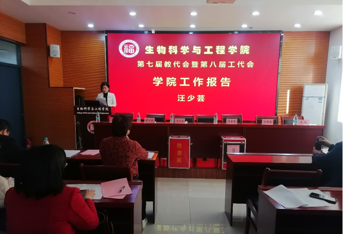 2023年12月28日下午,福州大学生物科学与工程学院第七届教代会暨第八届工代会在生工北楼柏物产厅隆重召开。全院教职工及特邀嘉宾齐聚一堂,共同回顾和总结学院过去五年的工作,并对新的一年学院的工作进行合理展望和部署。校工会程玉敏主席、院党委王秀萍书记、院长汪少芸教授、副院长石贤爱教授、院党委曹仁秋副书记、副院长王航副教授出席会议。