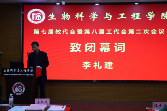 2024年12月26日下午,福州大学生物科学与工程学院第七届教代会暨第八届工代会第二次会议在生工北楼柏物产厅隆重召开。全院教职工齐聚一堂,共同回顾和总结学院2024年的工作,并对新的一年学院的工作进行合理展望和部署。院党委李礼建书记、院长汪少芸教授、副院长石贤爱教授、院党委曹仁秋副书记、副院长王航副教授出席会议。