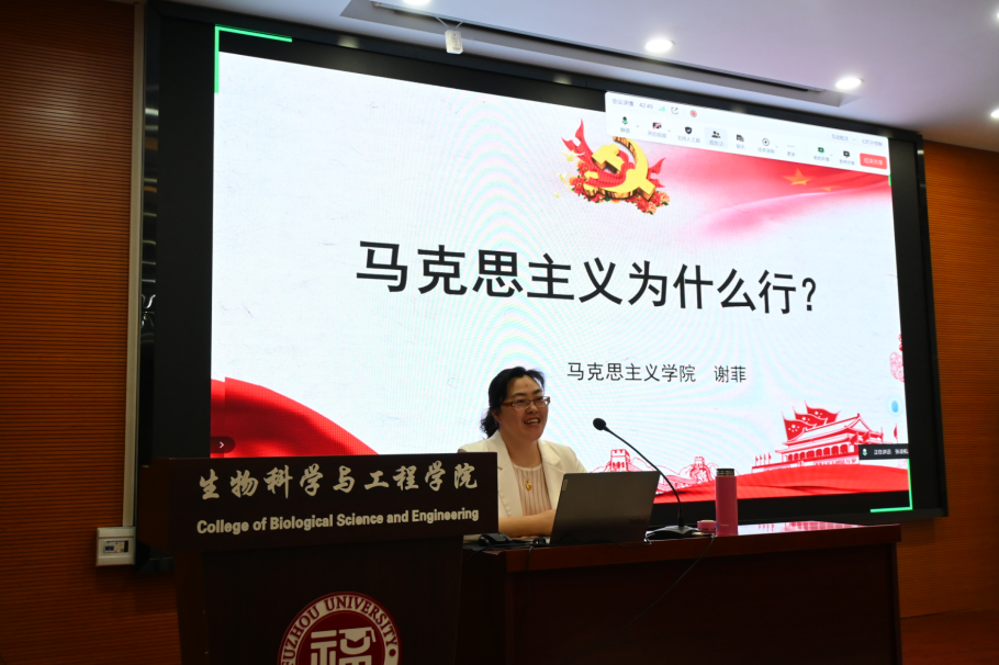 3月27日晚,马克思主义学院的谢菲教授以《马克思主义为什么行?》为题,为学员们呈现了深入人心的第三堂课,谢菲老师以深厚的学术素养和饱满的人文情怀,从纵向的历史逻辑、横向的比较鉴别和与中华传统文化的相契性三个方面娓娓道来,将马克思主义在中国从萌芽到兴盛的激扬历史化作了在场学员心中奔涌的情怀。学员们深受党史感染,立志以一往无前的奋斗姿态和风雨无阻的精神状态为中华民族伟大复兴做出自己的贡献。
