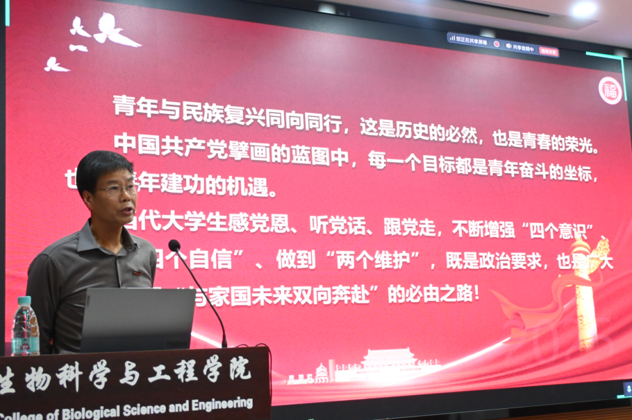 4月7日晚,院党委书记李礼建老师作《谈大学生为什么要入党》为主题的专题党课,李礼建书记从现阶段国际国内形势切入,结合丰富详实的案例、融入党的基本知识,从党的呼唤、国家需要和青年人的追求三个层面,以深入浅出的语言就大学生的政治追求和入党动机问题进行深刻阐述。李书记强调,青年与民族复兴同向同行,是历史的必然,也是青春的荣光。中国共产党擘画的蓝图中,每一个目标都是青年奋斗的坐标,也是青年建功的机遇。他勉励学生入党积极分子加强理论学习、提高政治站位、端正入党动机,感党恩、听党话、跟党走,不断增强“四个意识”、坚定“四个自信”、做到“两个维护”,实现“与家国未来双向奔赴”。