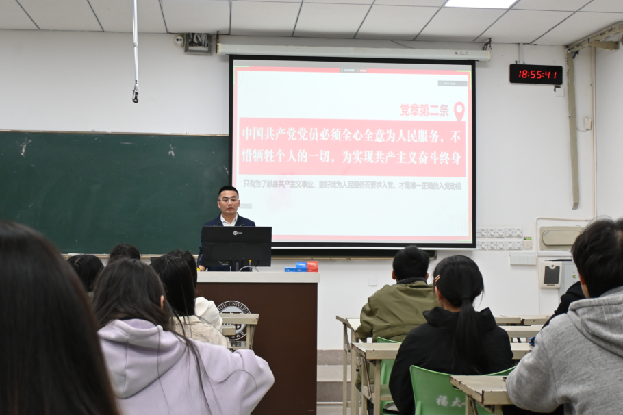 3月20日晚,学生工作部(处)副部长柯江锋副教授为培训班学员讲授第一堂课。柯江锋老师以《端正入党动机,争取早日入党》为题,以“争取入党的首要条件是什么?”为切入点启发同学们进行思考讨论;授课中,他紧扣主题,寓教于行,围绕“什么是入党动机?”、“什么是正确的入党动机?”、“如何端正入党动机?”等三个方面,紧密结合大学生思想实际,深入浅出展开讲解。强调:只有为了献身共产主义事业、更好地为人民服务而要求入党,才是唯一正确的入党动机。最后,柯江锋老师鼓励同学们通过正确途径端正入党动机,在思想和行动上积极向党组织靠拢。