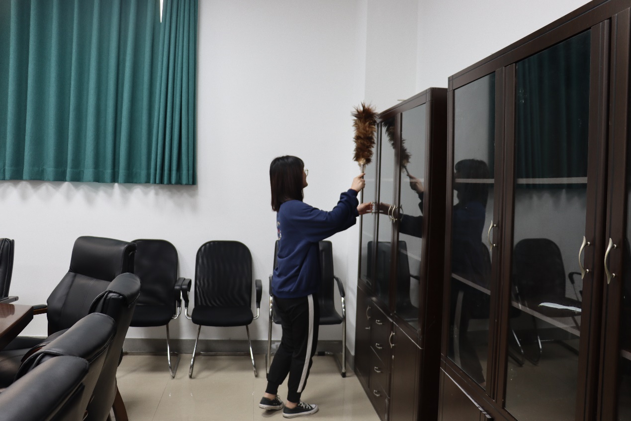 中午十二点整,学生党员们在院办门口集合,搬运资料、整理设备、清理卫生、分工有序。经过一下午的努力,资料摆放整齐,实验室台面锃亮,地面清洁,院办及学院实验室焕然一新。在打扫的过程中,学生党员们积极主动,用辛勤的劳动获取丰硕的成果,在实践中领悟劳动精神。光荣属于劳动者,幸福属于劳动者,通过此次活动学生党员们不仅意识到了劳动的重要性及必要性,也学会了如何在劳动中实现分工合作,提高效率。