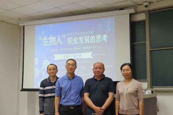 陈方和先生是厦门大学生物学系硕士、EMBA工商管理硕士,兼任福建省医药行业协会监事长等,对生物医药专业和市场营销等有着丰富职场经验。本次讲座上,他着重从生物医药概述、生物医药产业现状及发展前景分析、“生物人”职业发展的思考、厦门生物医药港--我可能的职业选择等四个方面,并结合他近30年的工作经历与同学们分享了 “生物人”的职业发展思考,并对基因工程药物、生物医药产业未来及生物医药带来的技术进步等进行了详细的阐述。同学们认真听讲,积极思考,踊跃提问,现场气氛热烈。